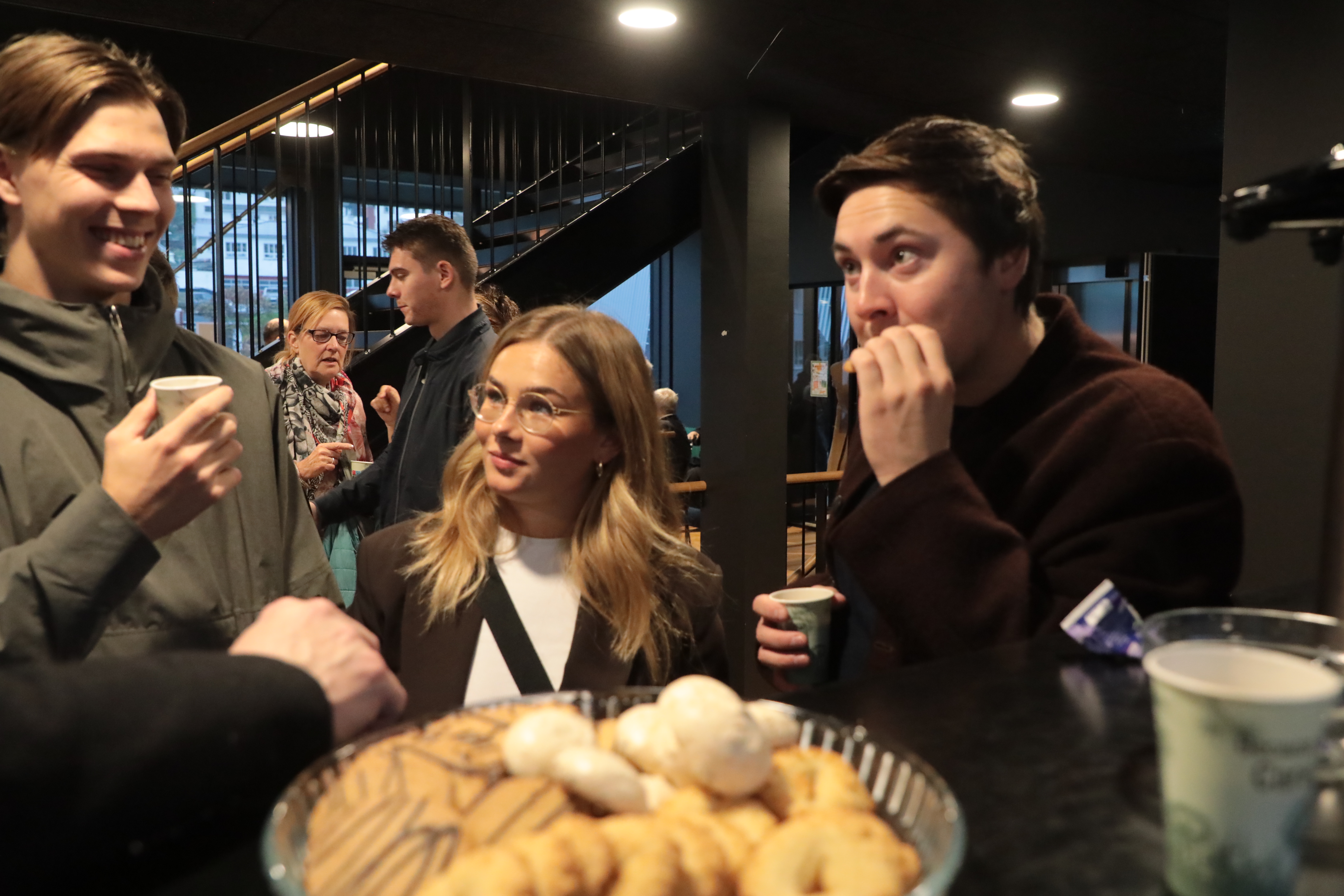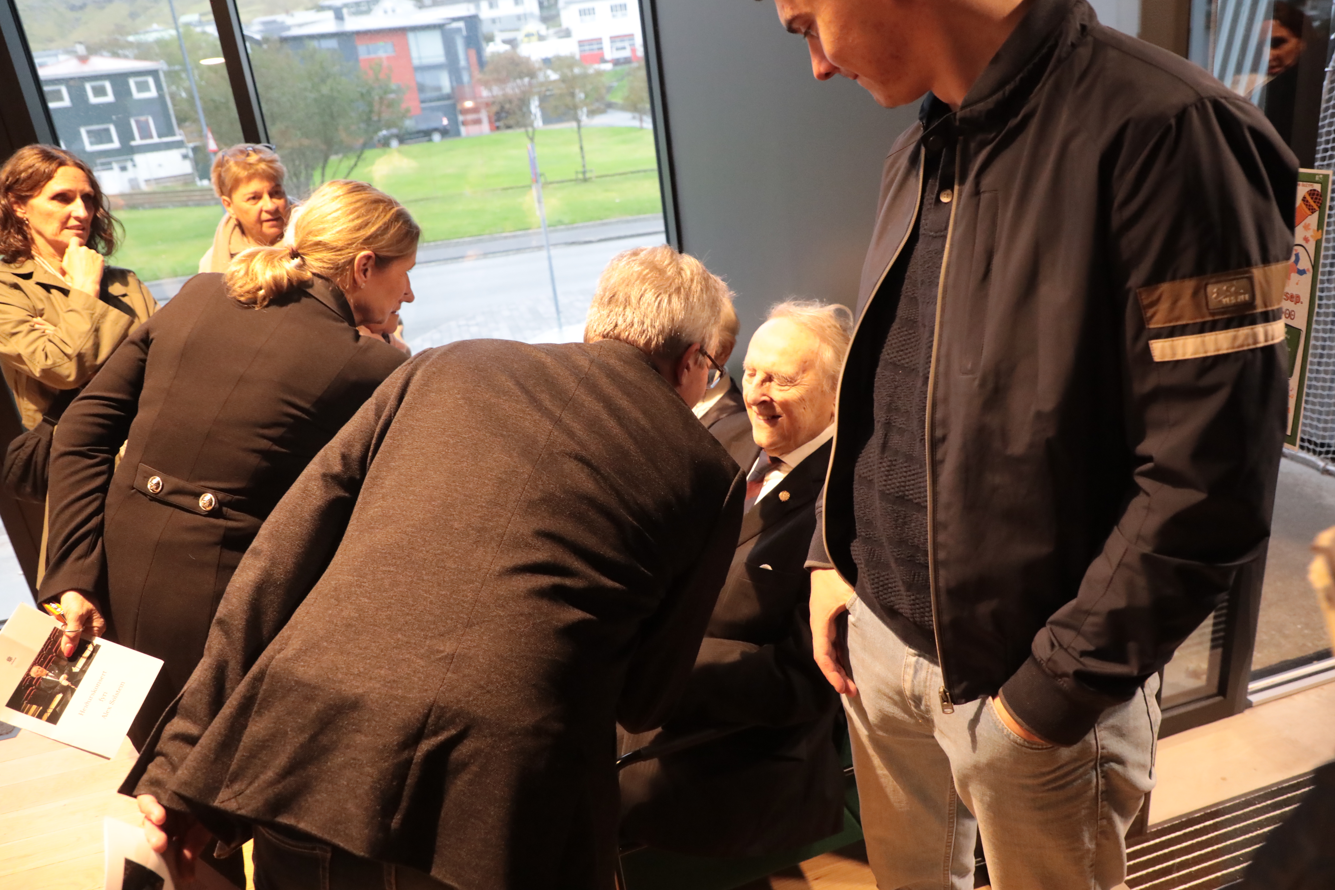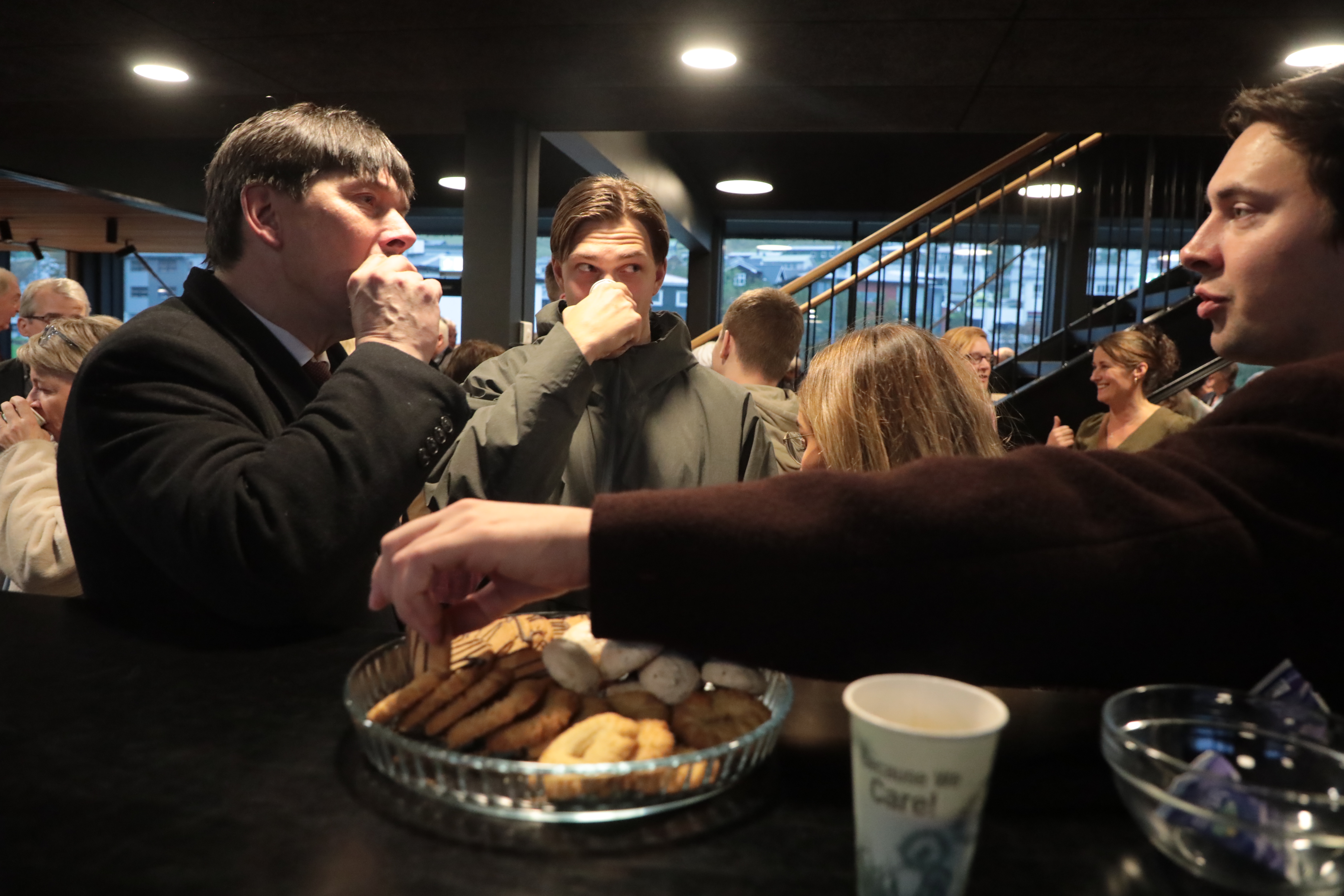 Aftaná varð boðið kaffi og køkur, og prátið gekk so lystiliga, har øll vildu sleppa at heilsa uppá høvuðspersónin, Alex.