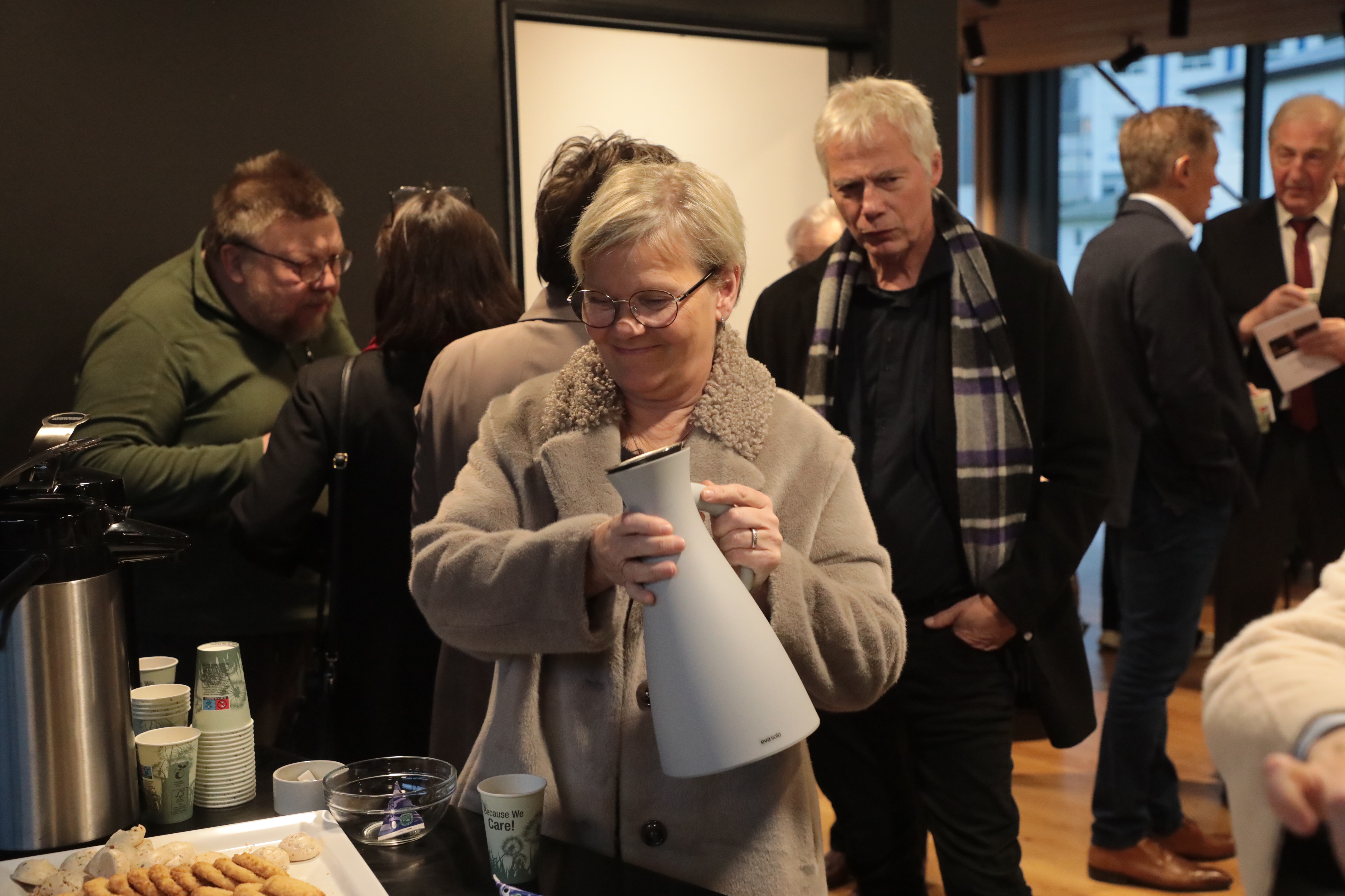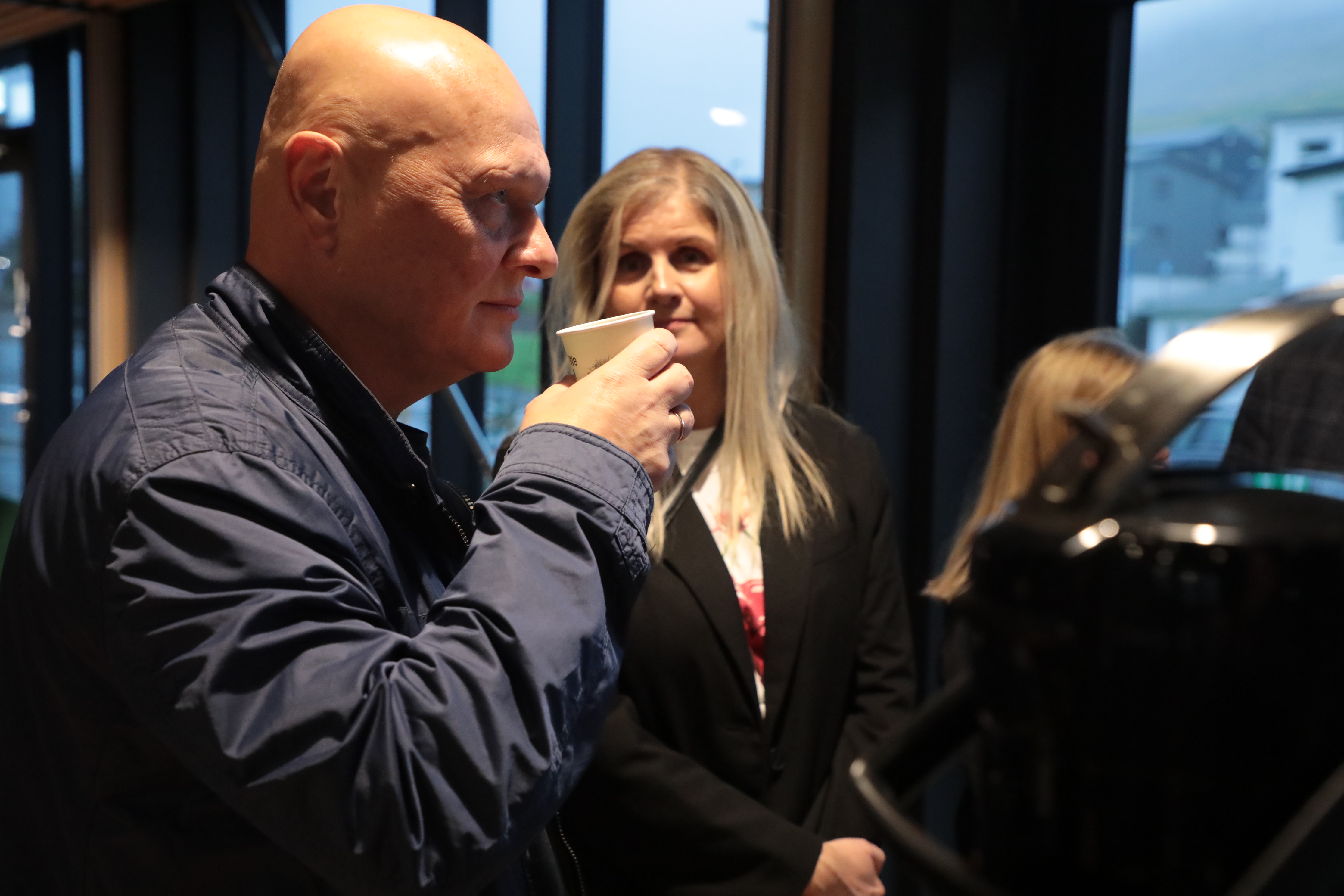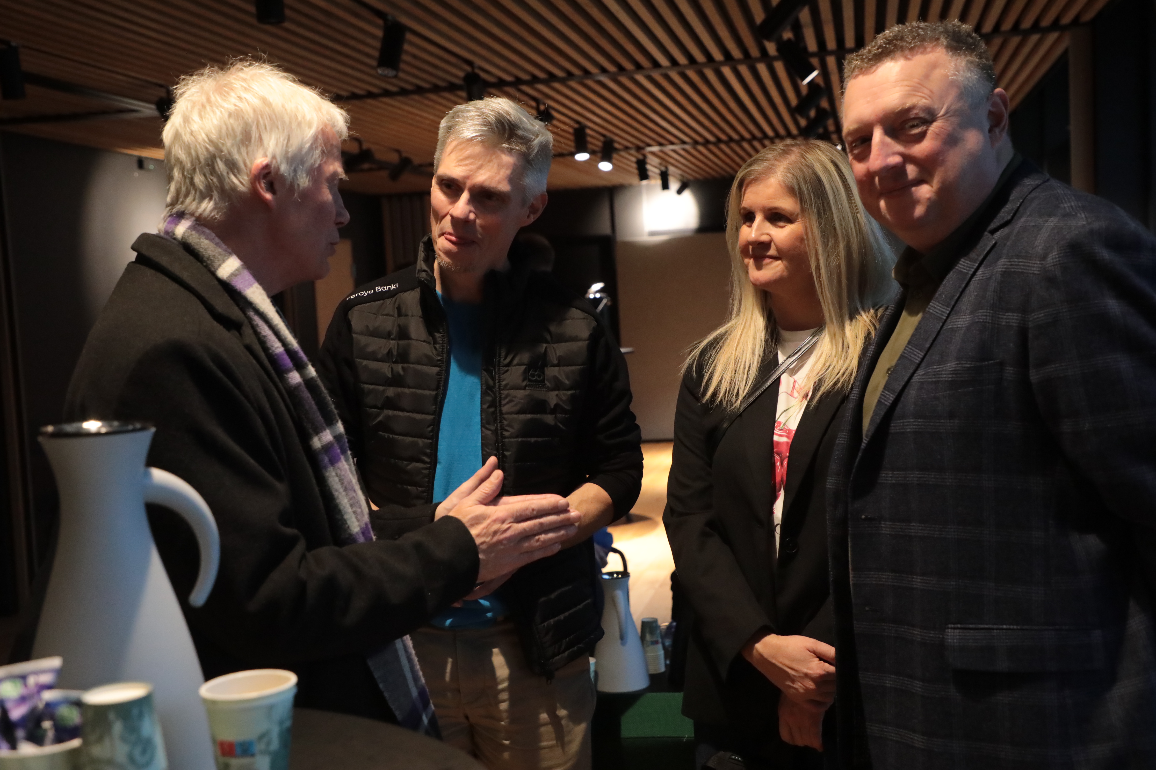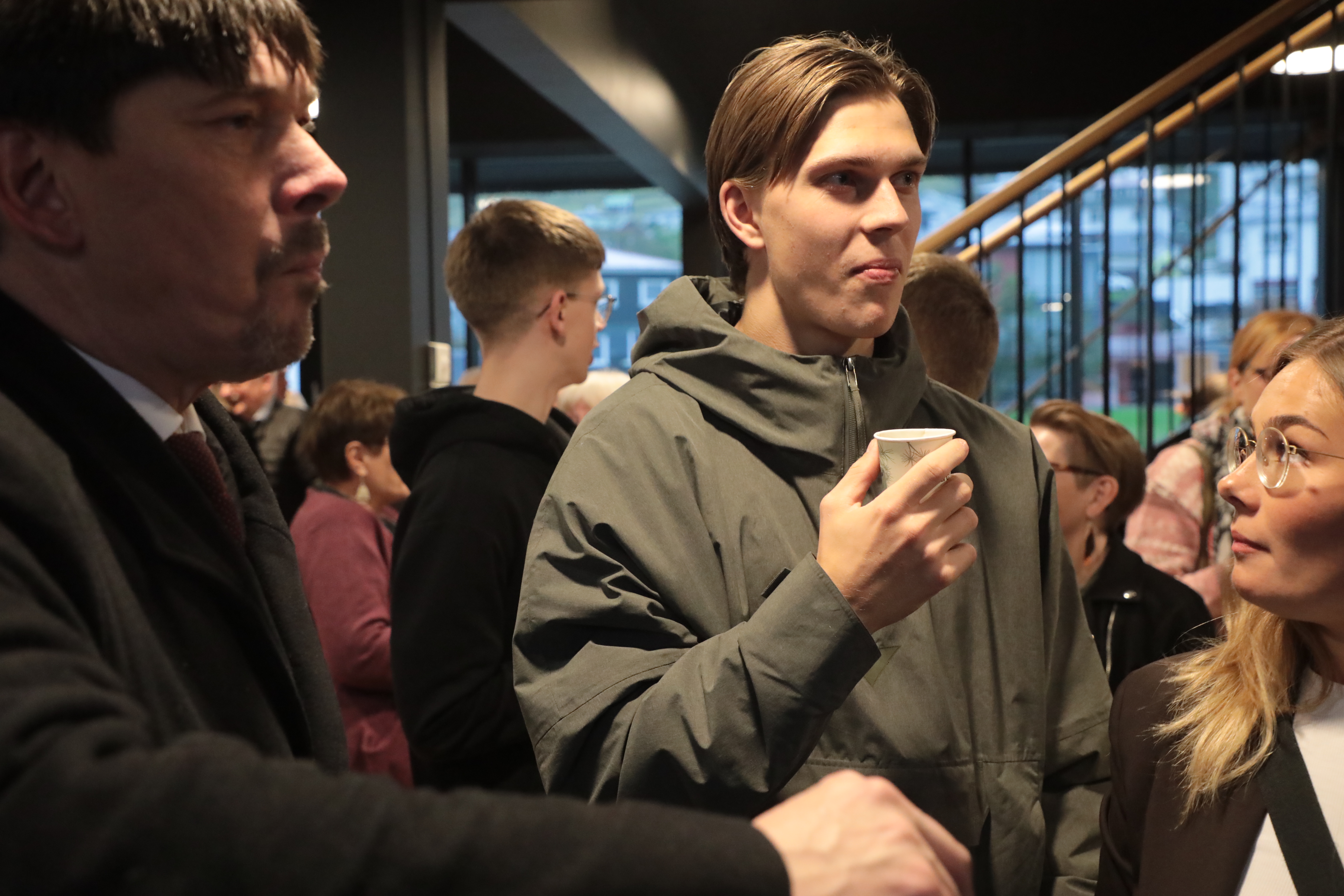 Aftaná varð boðið kaffi og køkur, og prátið gekk so lystiliga, har øll vildu sleppa at heilsa uppá høvuðspersónin, Alex.