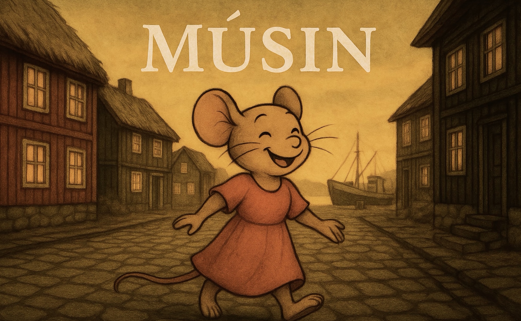 Músin er næsti sangur í eini ævintýrrøð hjá Steintór Rasmussen, har hann hevur skrivað og innspælt nakrar lættar sangir um meiri tung og aktuell evnir. Fyrsta vísan var Kongurin og synir sjey. Nú er tað søgan um ta fátæku heimleysu músina, sum kennir seg noydda at rýma úr Føroyum fyri at smíða sær eydnuna í einum fremmandum landi.