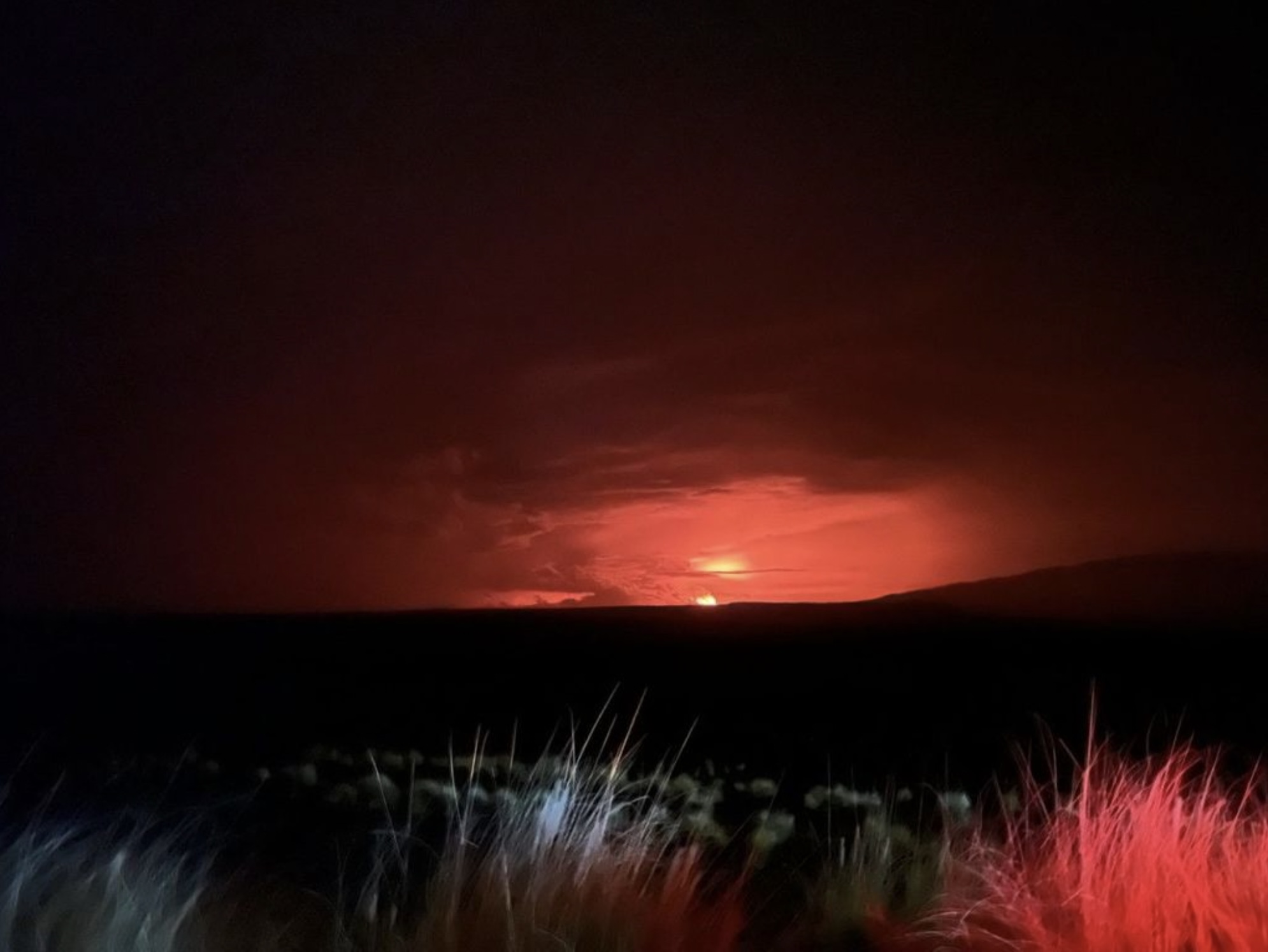 Náttarhiminin yvir størstu oynna í Hawaii er gløðandi, meðan heit lava flýtur.