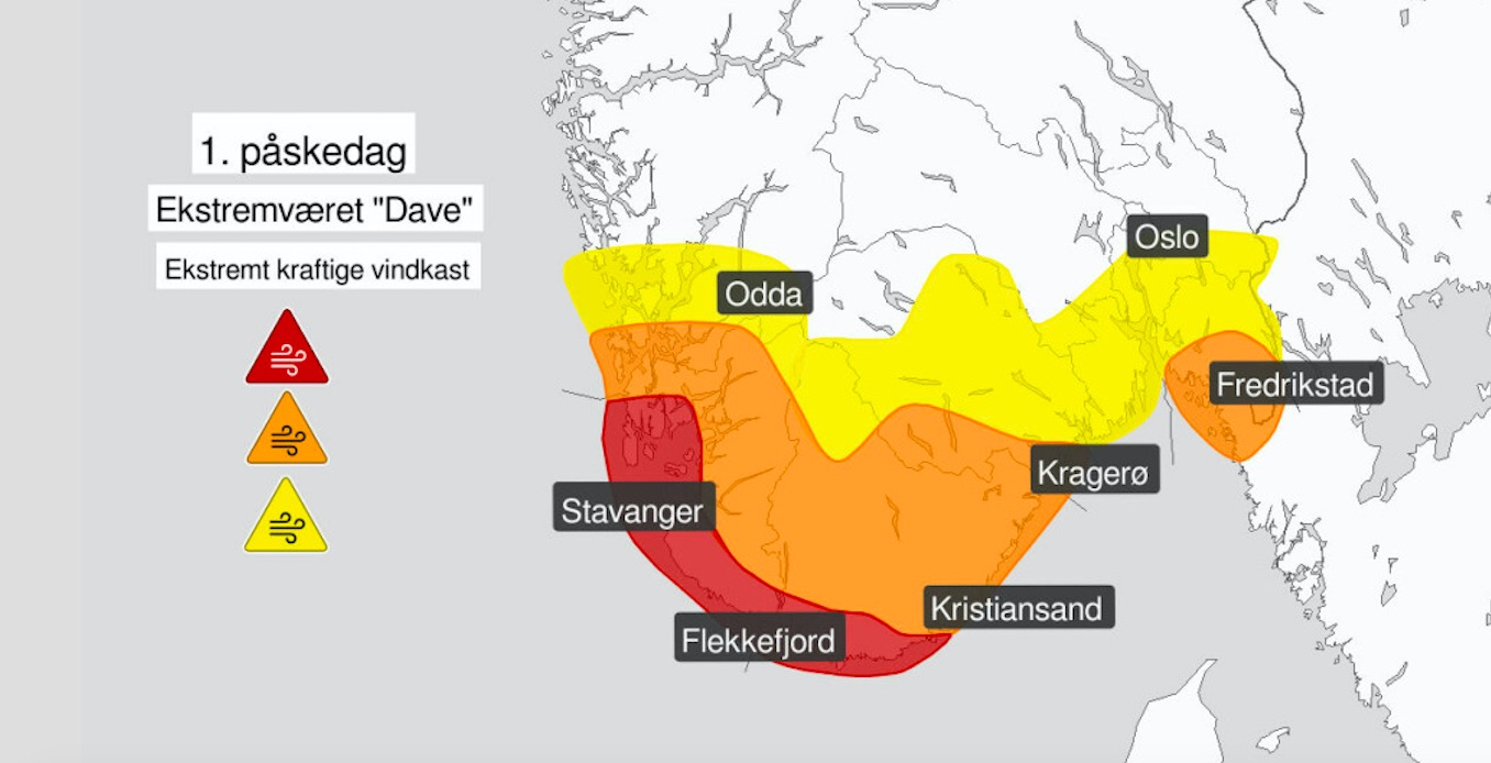 Tað er illveðrið, Dave, sum í morgin fer at raka norska suðurlandið.