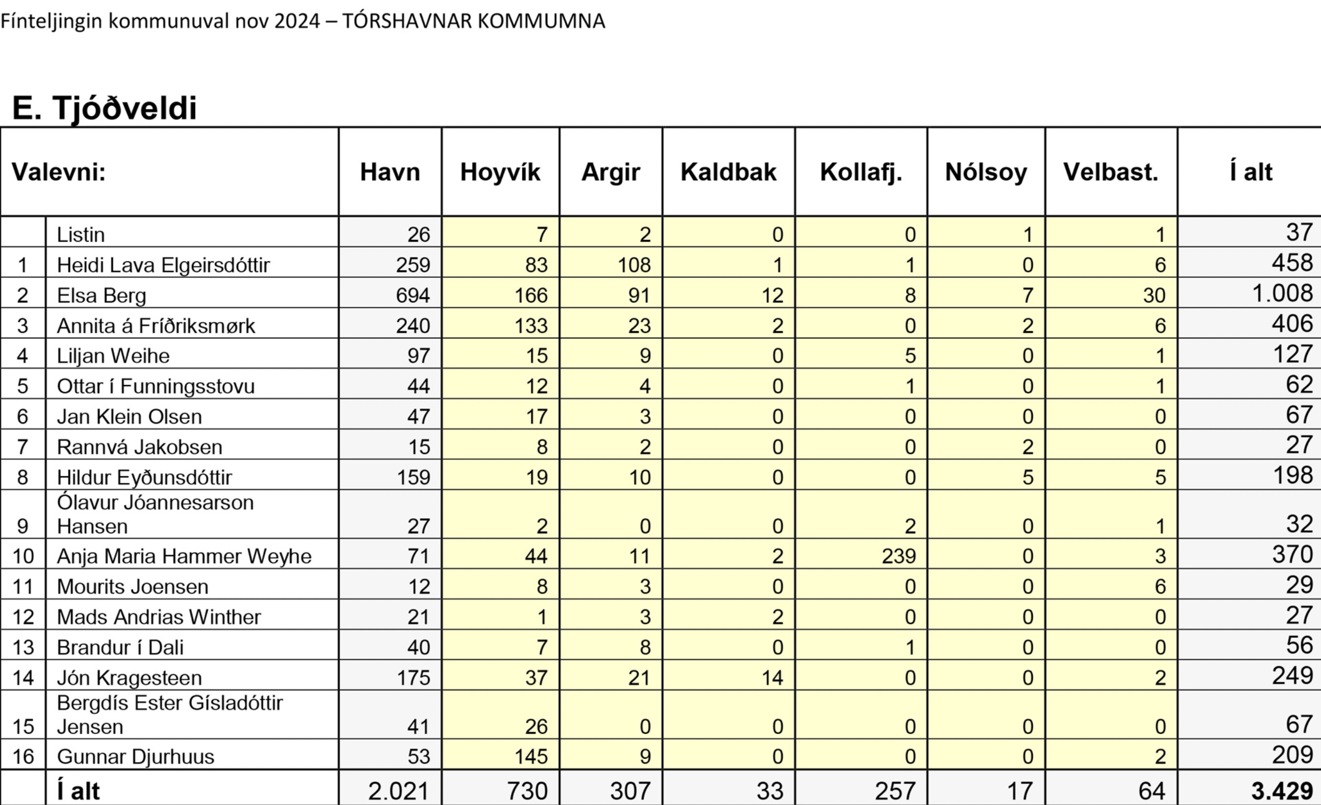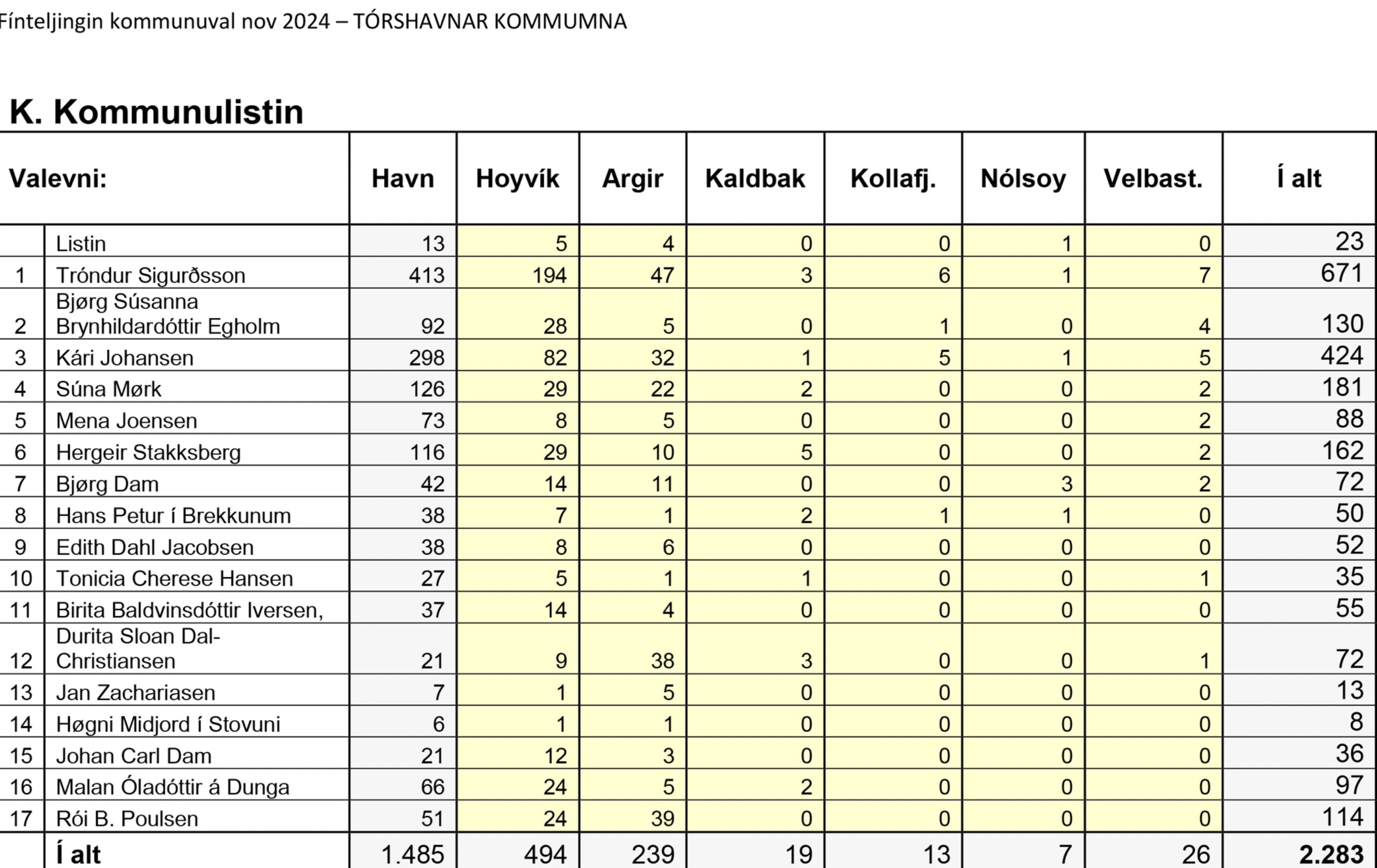 Í gjárkvøldið var fínteljingin av kommunuvalinum í Tórshavnar kommunu liðug. Fínteljingin hevði bert smáar flytingar við sær og broytti tískil ikki úrslitið frá valkvøldinum.