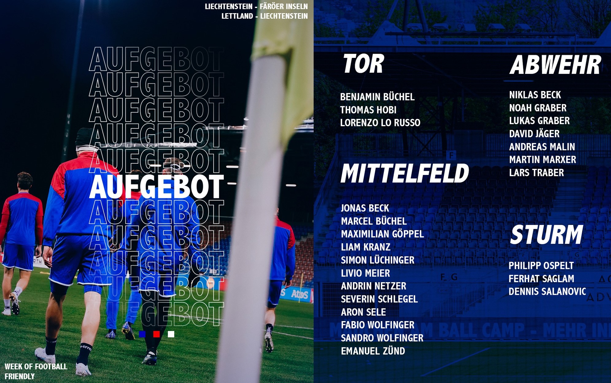 HER er hópurin hjá Liktinstein við málverjum (Tor), verjuleikarum (Abwehr), miðvallarum (Mittelfeld) og áleyparum (Sturm):