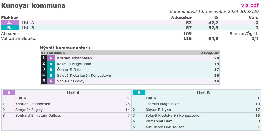 Soleiðis fall valið í Kunoyar kommunu: