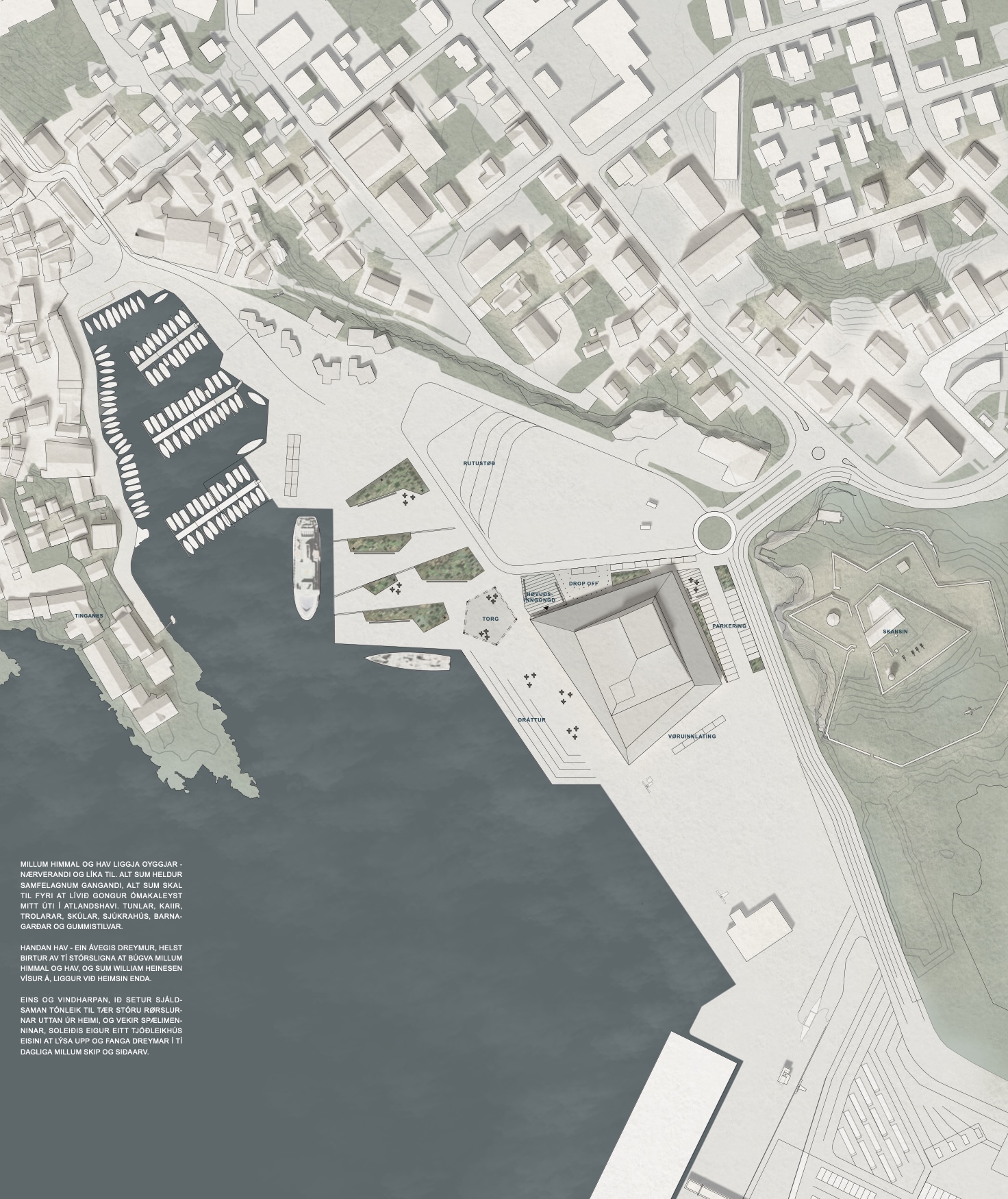 Niðanfyri nakrar myndir av uppskotinum hjá Selmar Nielsen Arkitektum:
