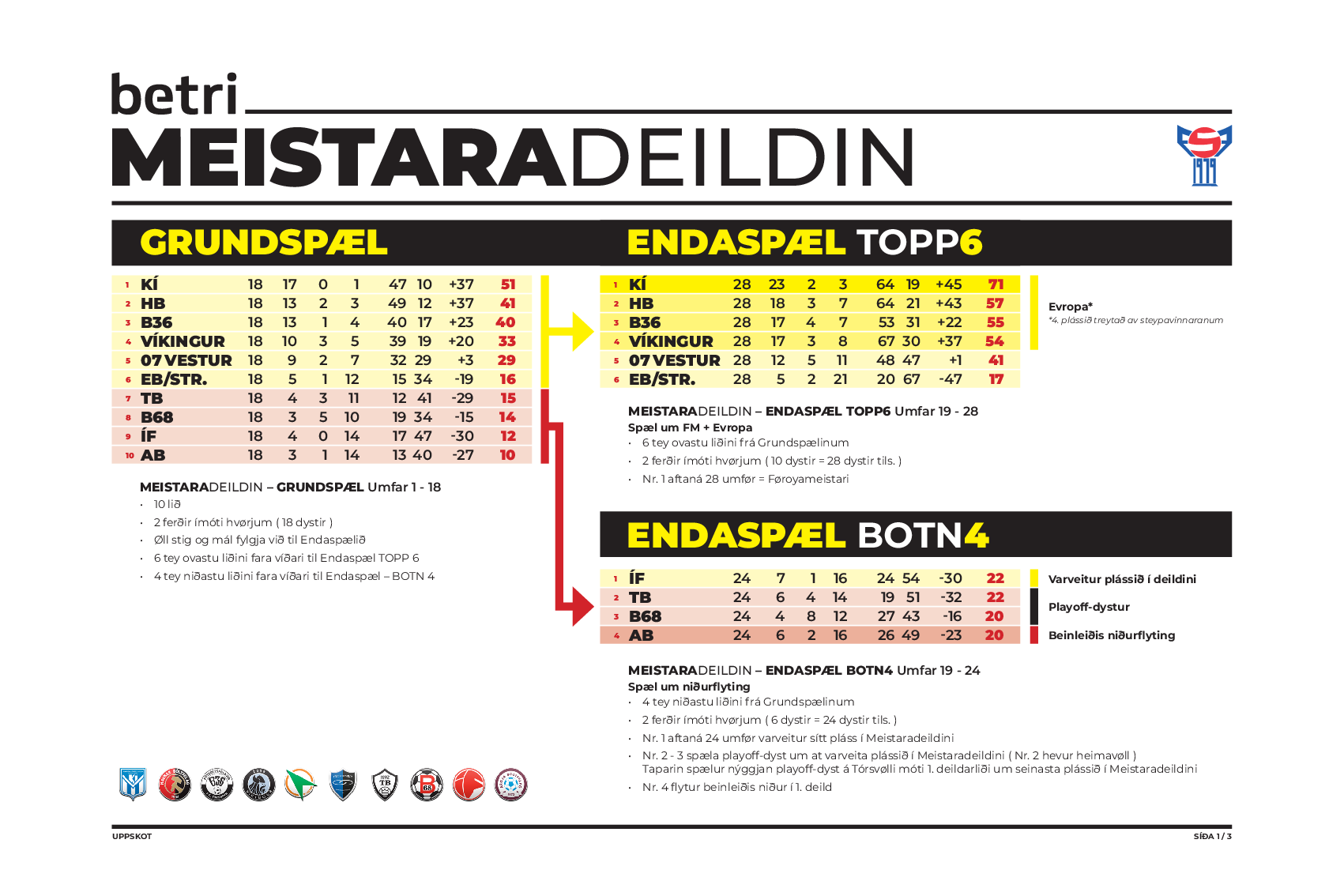 Í meistaraspælinum verður tað sama galdandi, sum er í løtuni. Nummar eitt vinnur FM, nummar tvey og trý sleppa í Evropa og nummar kann koma í Evropa, men tað er tengt at vinnaranum í kappingini um Løgmanssteypið.
