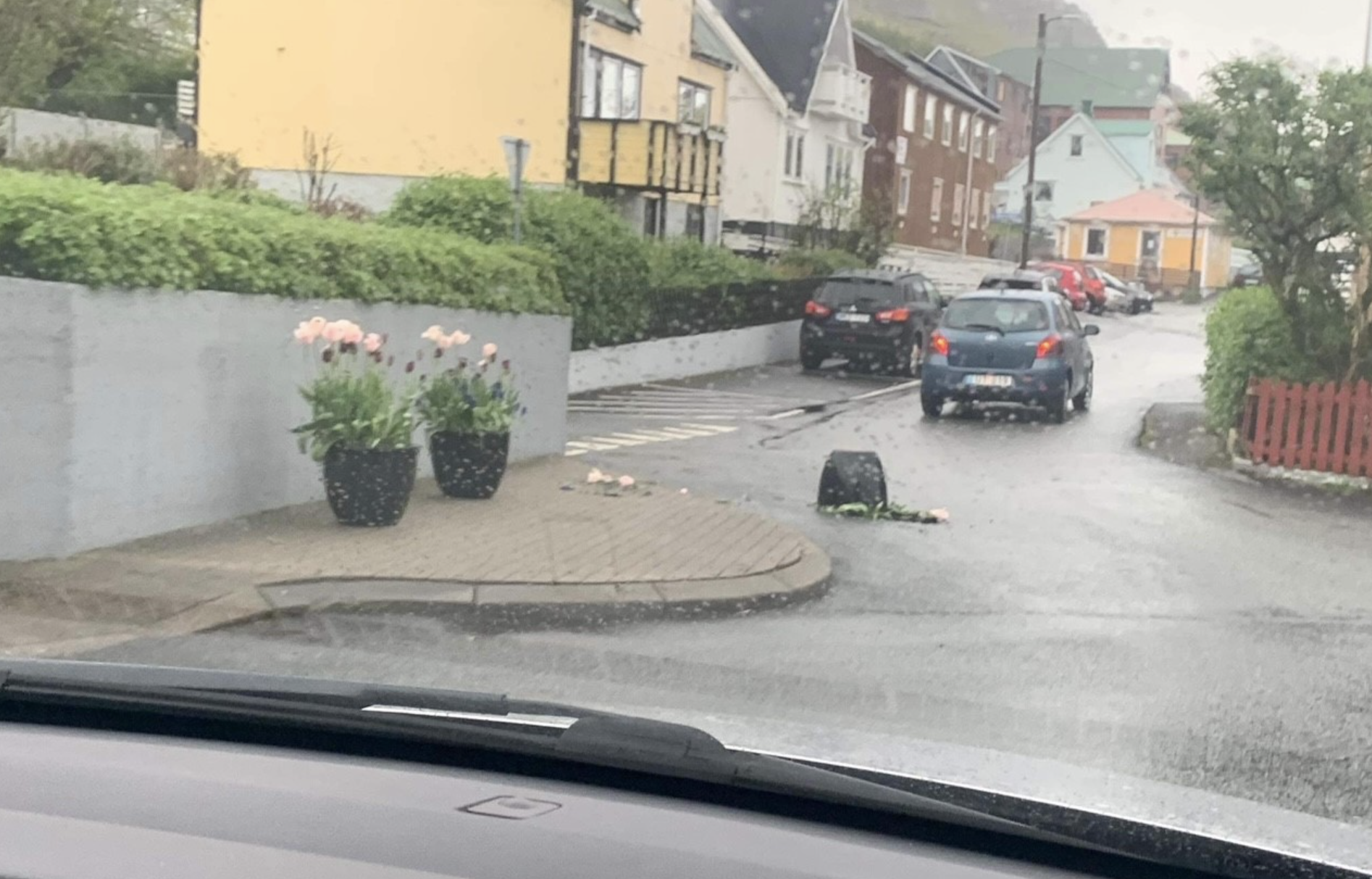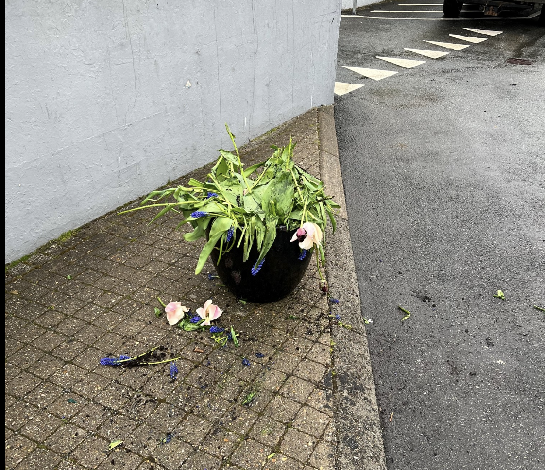 Soleiðis skrivar Tvøroyrar kommuna á Facebook-síðu síni í morgun sum viðmerking til nakrar myndir av brotnum urtapottum í miðbýnum á Tvøroyri.