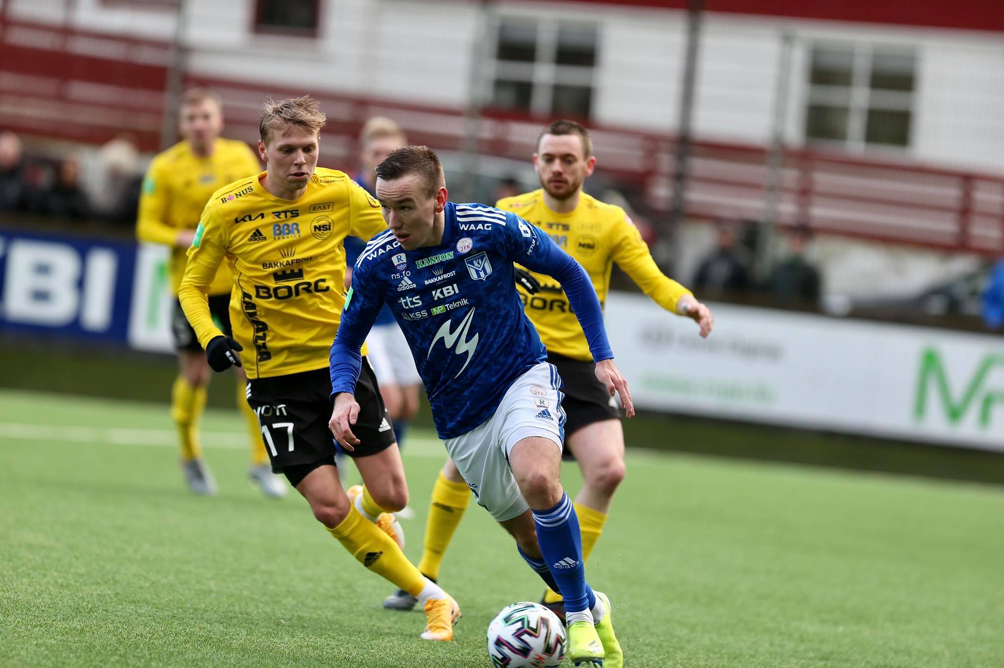 Klokkan 16 var fyrsta bríksl í Fuglafirði, har TB er gestur. Eftir fyrra hálvleik er heimaliðið frammanfyri 2-0. Uros Stojanov og Gundur E. Petersen hava skorað málini.