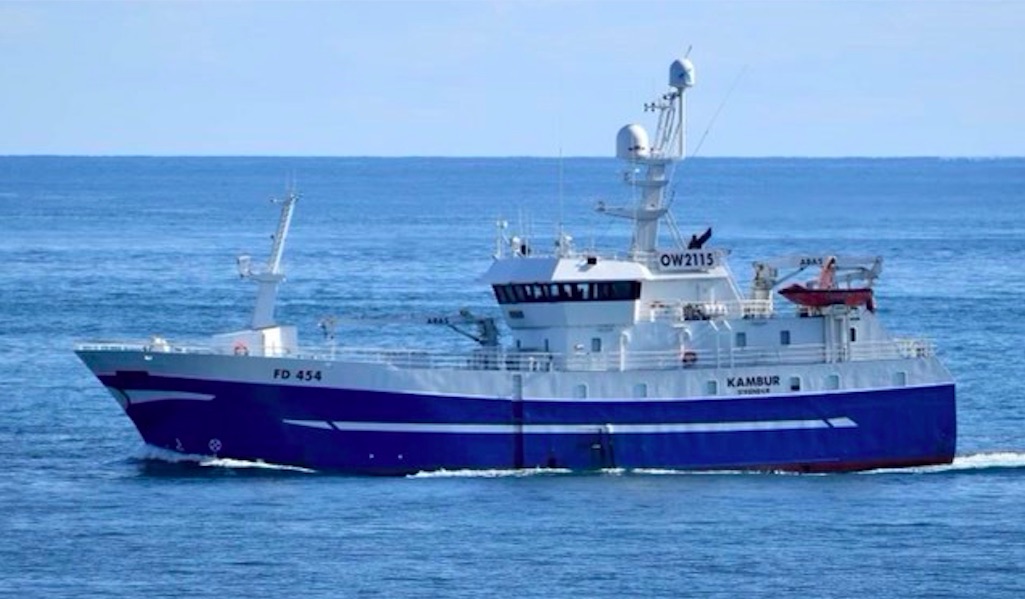 Í morgun fekk frystilínuskipið Kambur ein sjógv nakrar fjórðingar suður úr Føroyum.