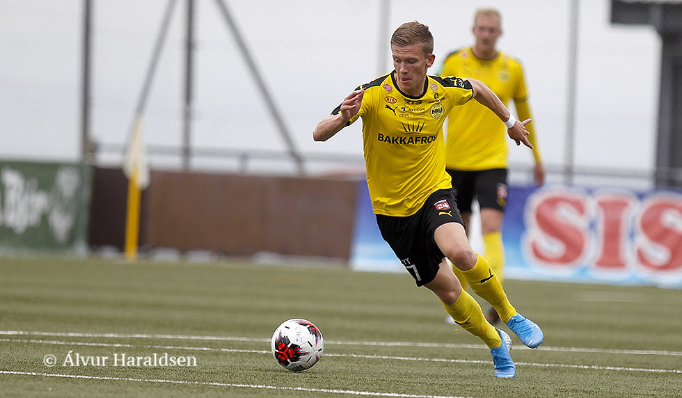 Tað var eisini eftir uppspæl og hyvirlapp í høgru, at NSÍ skoraði fyrra málið. Marius Kryger Lind átti uppleggið, og við nærra stólpa var tað Aron Knudsen, sum setti bóltin dygst inn við nærra stólpa.