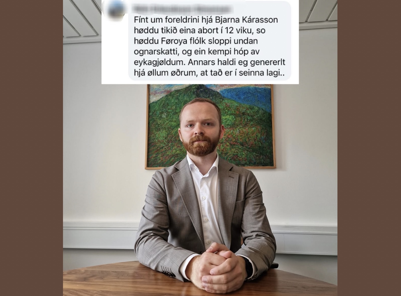 Soleiðis skrivar Bjarni Kárason Petersen, landsstýrismaður í lógarmálum, á facebook í dag. Tað ger kann, eftir ein persónur hevur skrivað á Facebook soleiðis