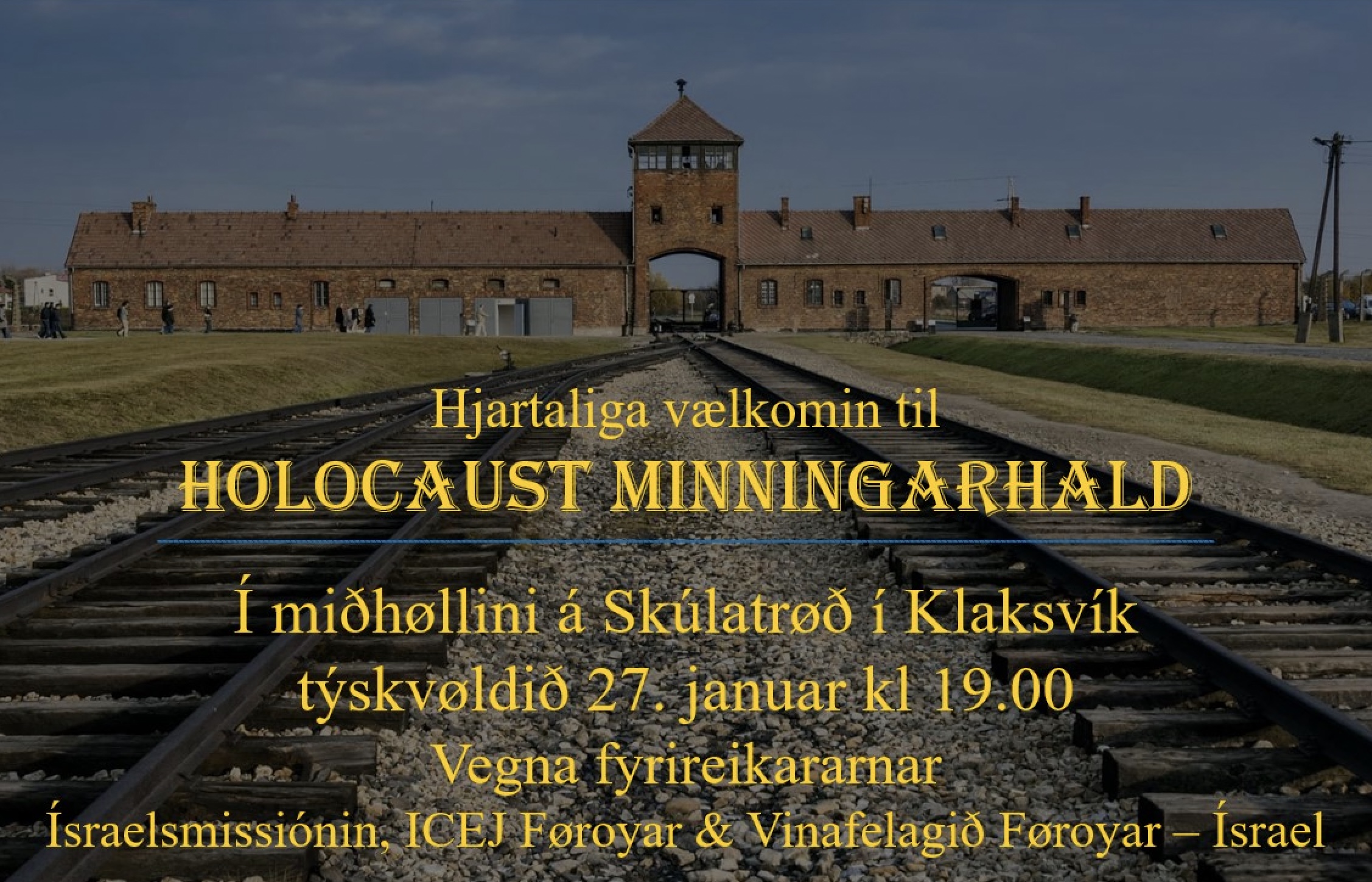 Ísraelsmissiónin, ICEJ Føroyar & Vinafelagið Føroyar – Ísrael bjóða aftur í ár til Holocaust minningarhald. Hesaferð í Klaksvík.