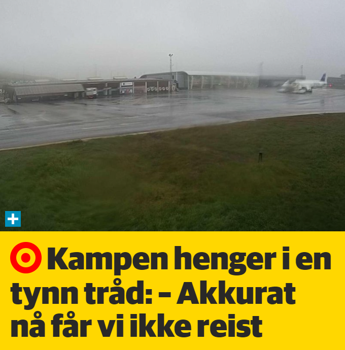 Nú skrivar Avisa Nordland, ið er størsta blaðið í Nordlands Fylke - landspartinum har Bodø er størsti býurin - at dysturin hongur í einum tunnum tráði, tí hópurin hjá Bodø/Glimt fær ikki farið til Føroya sum veðrið er nú.