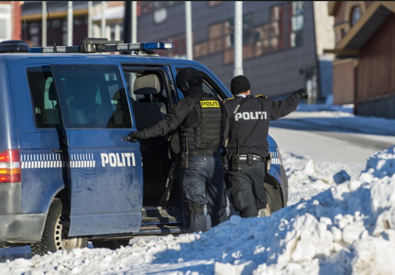 Løgreglan heitti á fólk um at savnast í Katuaq, ið er Norðurlandahúsið í Grønlandi, sum er í grannalagnum.