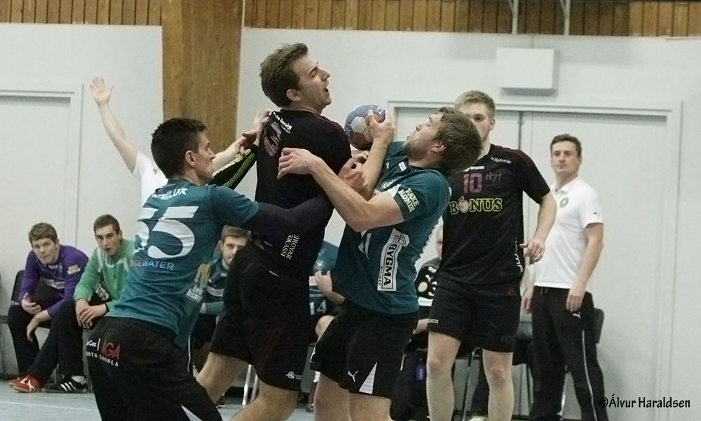 TRÝST á PÍLIN undir MYNDINI, og hoyr brotið, tá Tróndur Arge segði frá tí seinastu løtuni av dystinum millum H71 og Kyndil í bólkaspælinum í Coca Cola steypakappingini. H71 vann dystin 24-22, tá Peter Krogh var dystaravgerandi í teimum doyggjandi sekundunum.