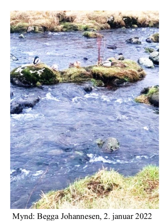 spinnarínum. Tá ið vit nærkað- ust Spinnarínum, hoyrdu og sóu vit, at vatn rann niður úr rennuni eitt stað á rennubreytini. Hetta mátti kannast nærri. Jú, har var eitt hol í rennuni og ein lúka hekk niður úr holinum, so tað var ikki so løgið, at vatnið ikki rann víðari, men skvatlaði niður úr stóra holinum. Hetta máttu vit gera okkurt við. Tað eydnaðist okkum at lata lúkuna aftur undir holinum, soleiðis at vatnið nú rann víðari. Stutt eftir begynti eitt stórt hjól at snurra, so hetta var ordiliga spennandi!