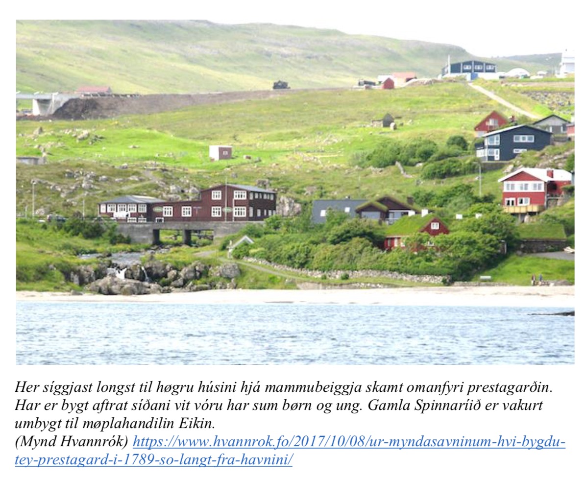 Ein ommubeiggi búði í prestagarðinum beint niðanfyri húsini hjá mammubeiggja. Hann umsetti í 1925 sangin hjá Grundtvig (1837): Kirken den er et gammelt hus. Her eru partar úr fyrsta og øðrum ørindi: