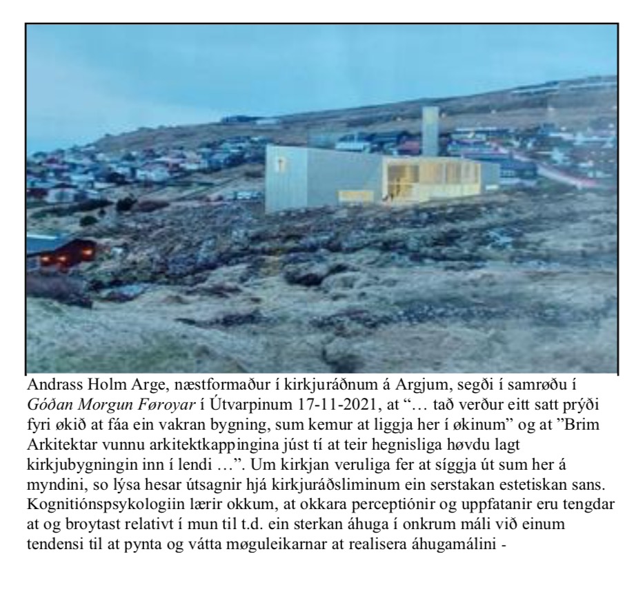 Út frá hesum fer einki av nøkrum, um kirkjan verður bygt eitt annað stað á Argjum sum t.d. har gamli skúlin stendur. Og enn lættari kann tað gerast, tá ið hon enn bert skal flytast á pappírinum.