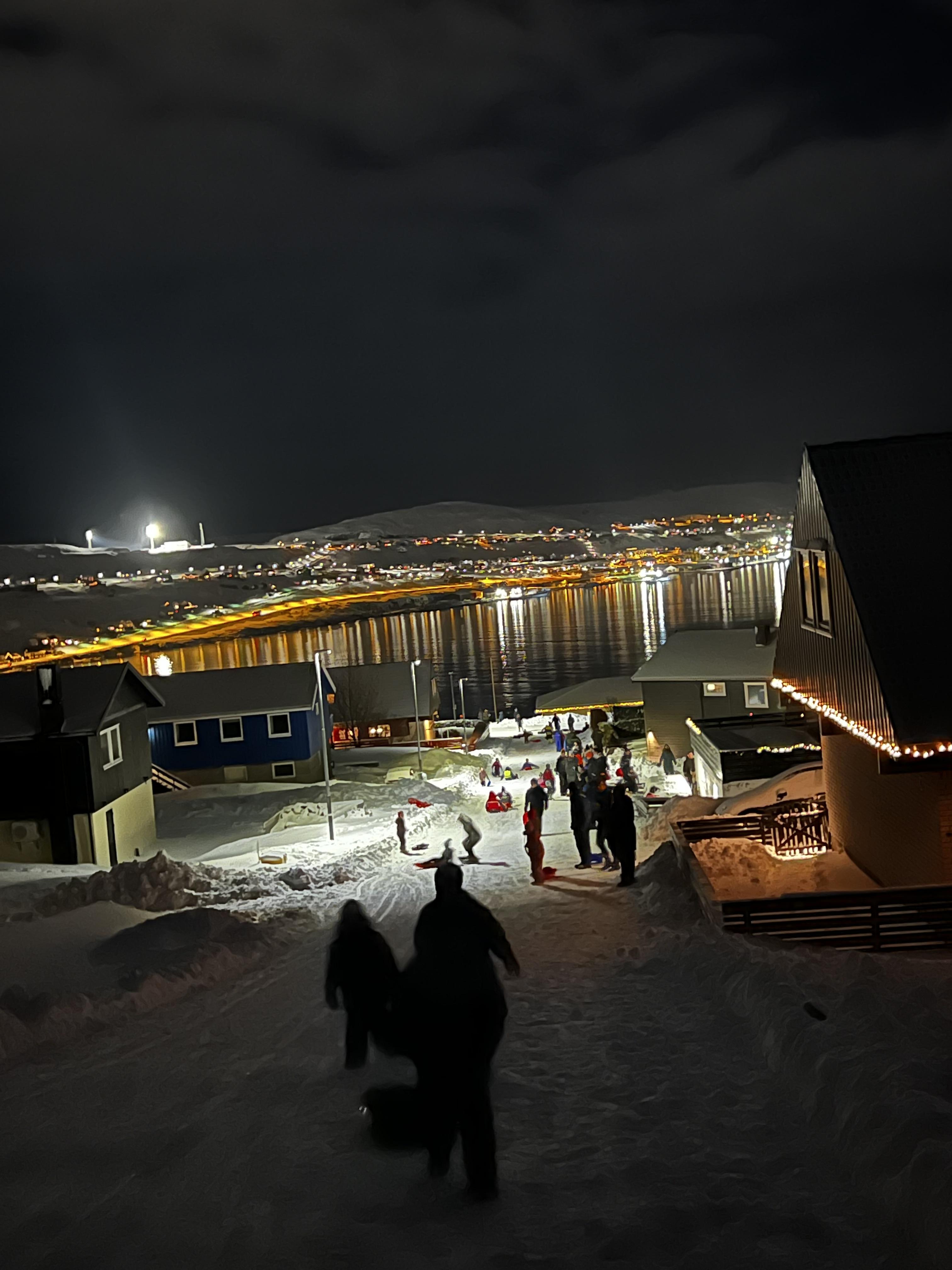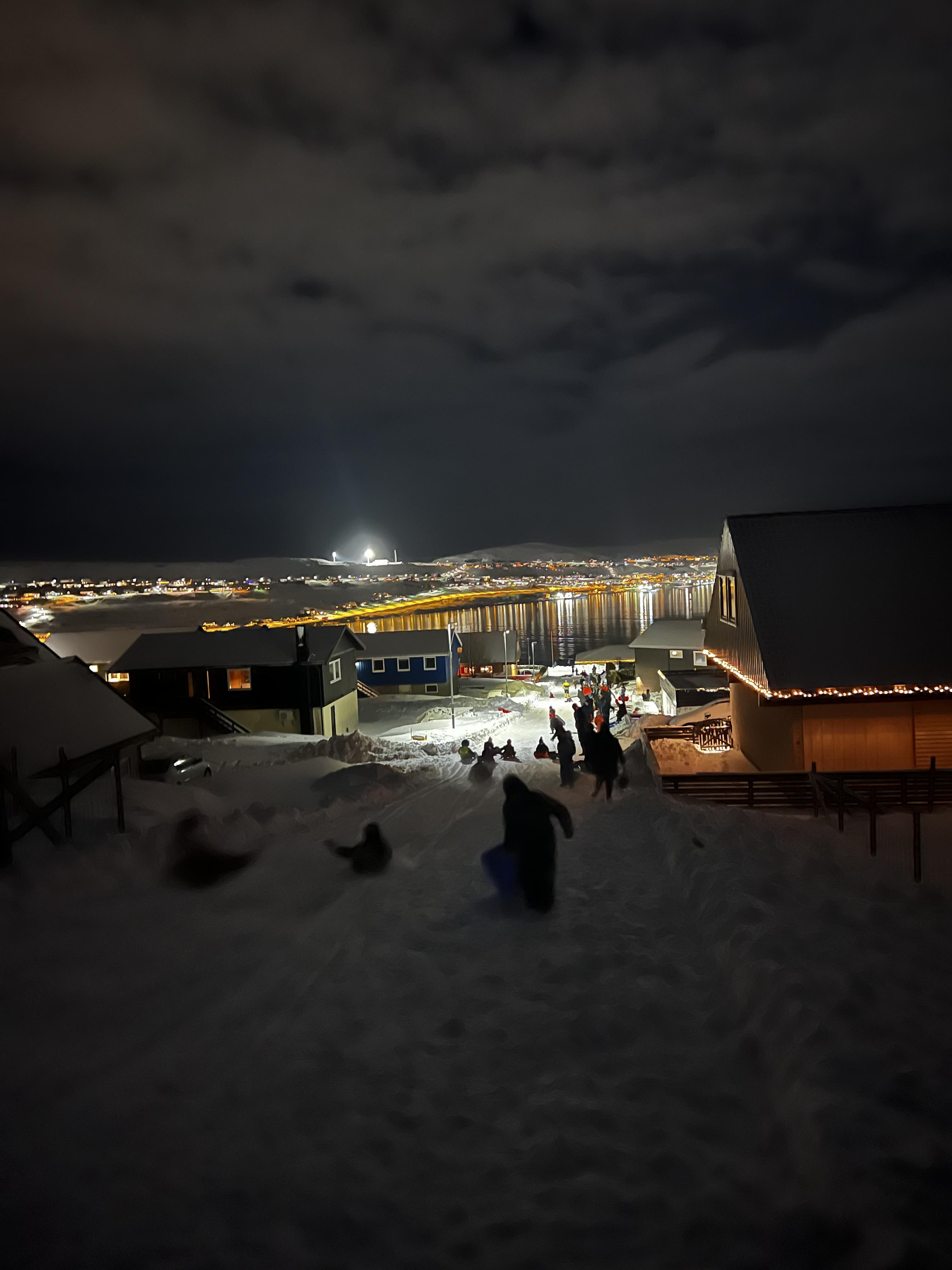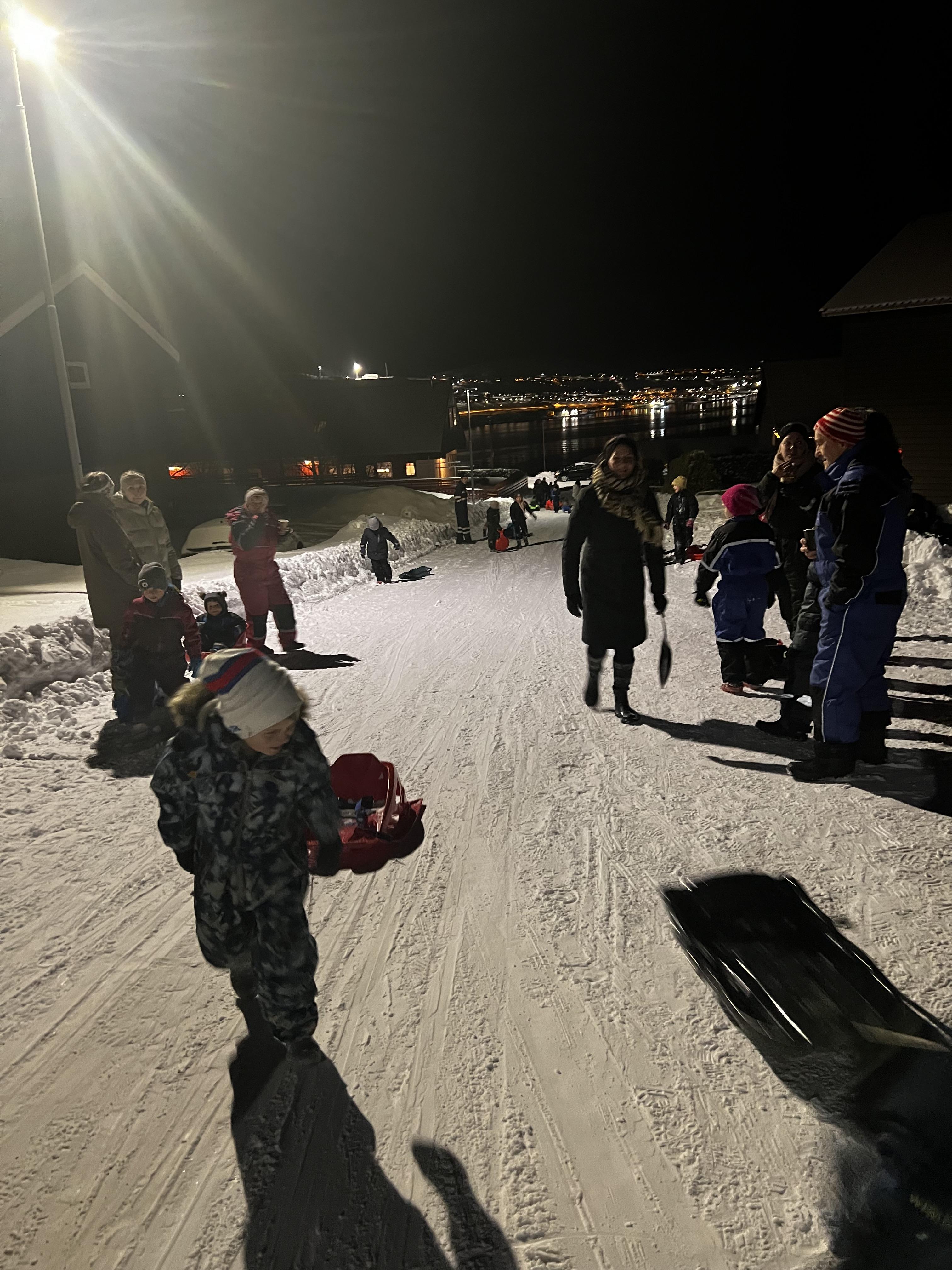 Í góða kavaveðrinum í kvøld, hugnaði børn og vaksin sær óført á sletu. Kommunan bjóðaði bollar og heitt kakao.