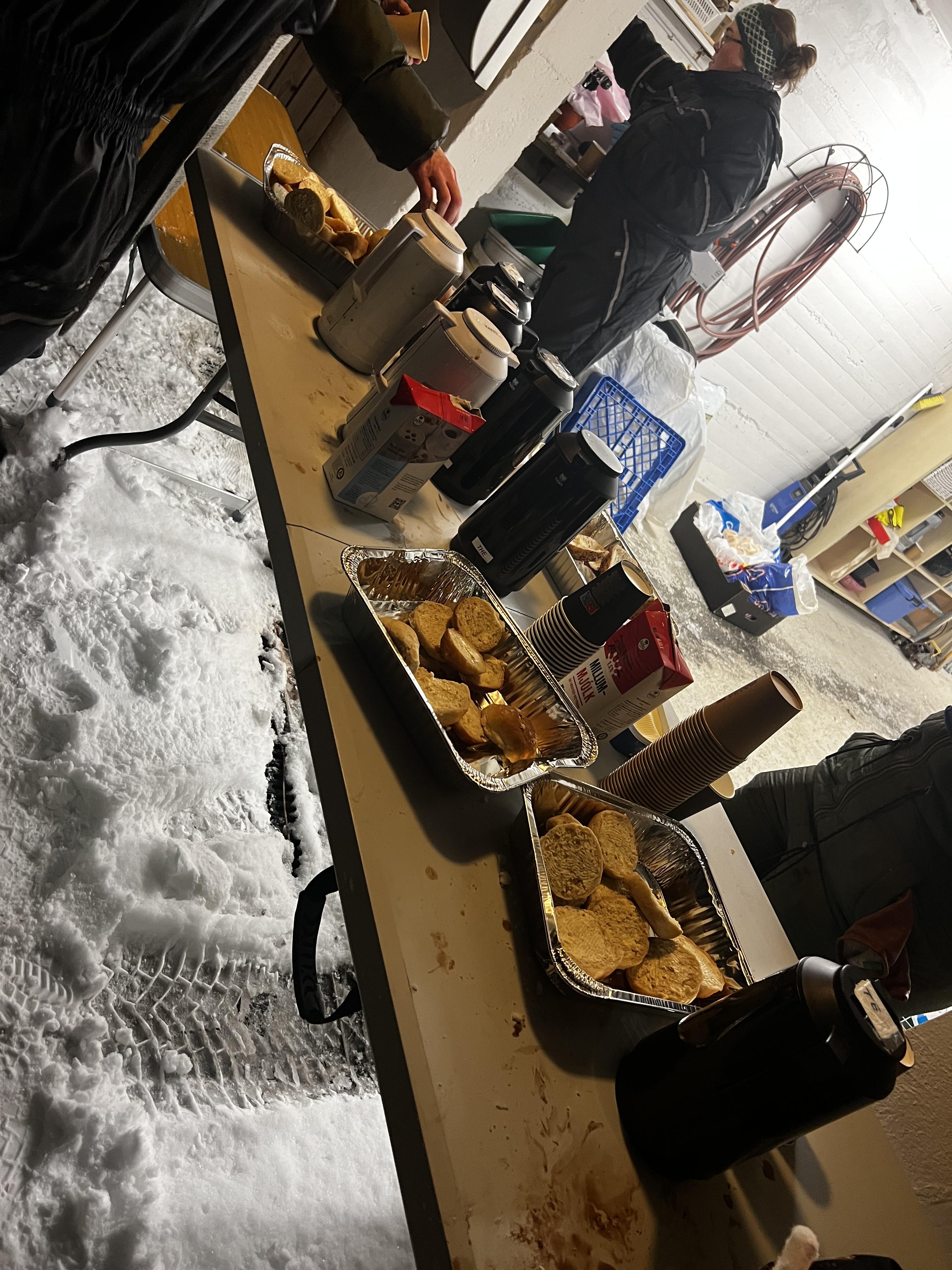Bollar og heitt kakao komu væl við í kuldanum
