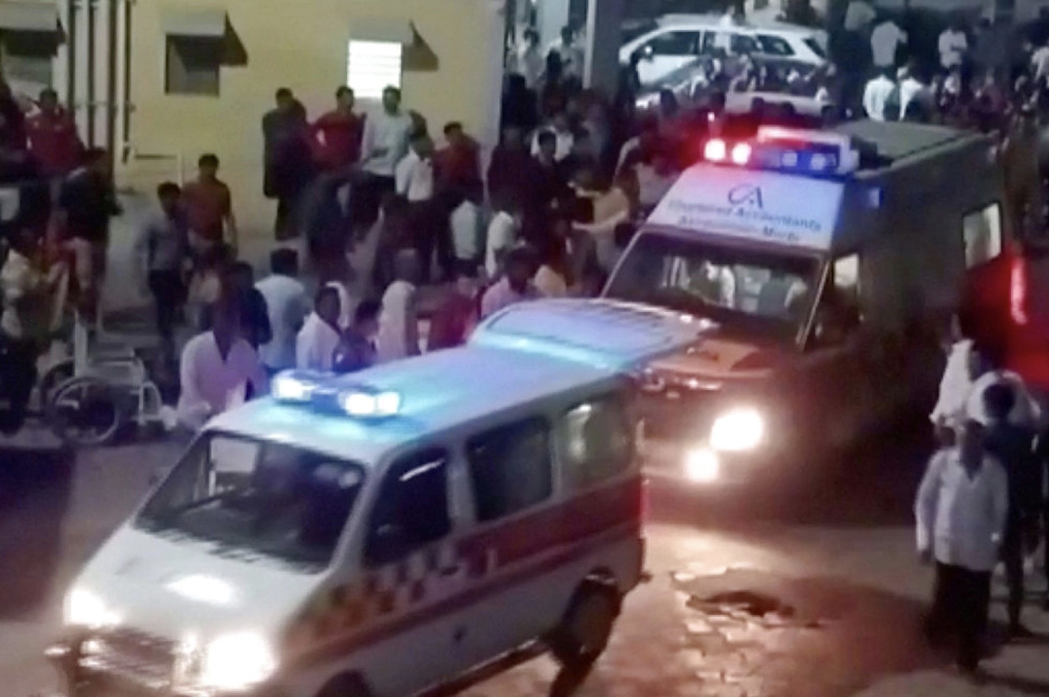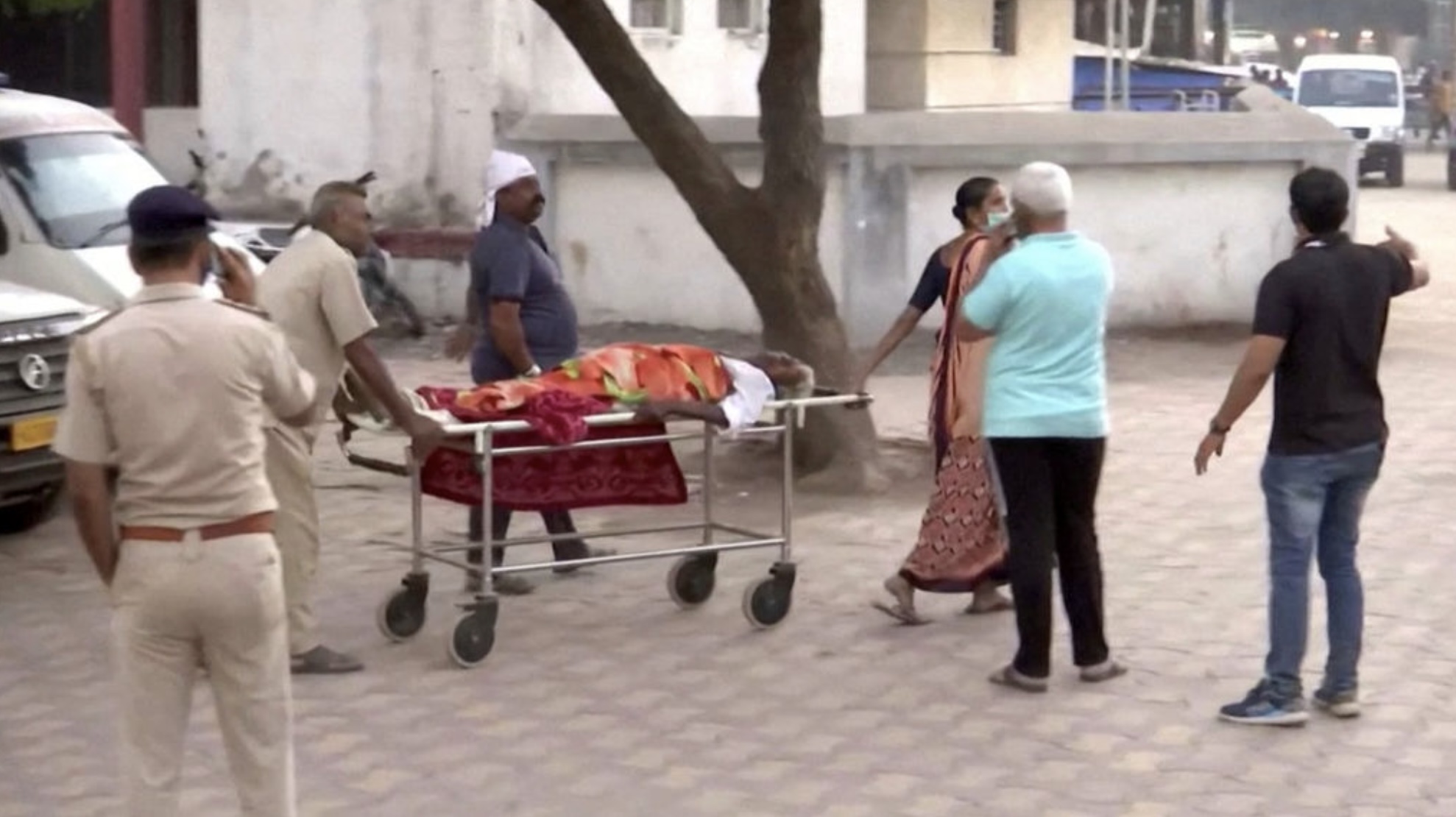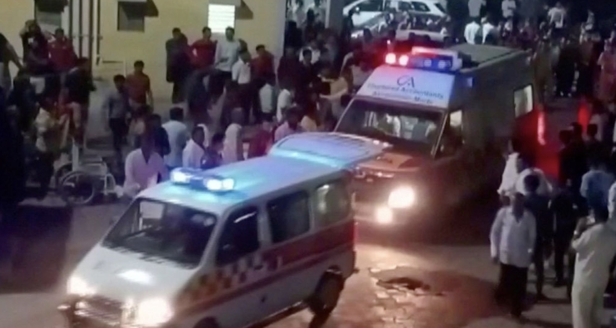 Myndir í indiskum sjónvarpi í gjár og tíðliga í morgun vísa sjúkrabilar í pendulfarti millum vanlukkustaðið og sjúkrahúsið í býnum.