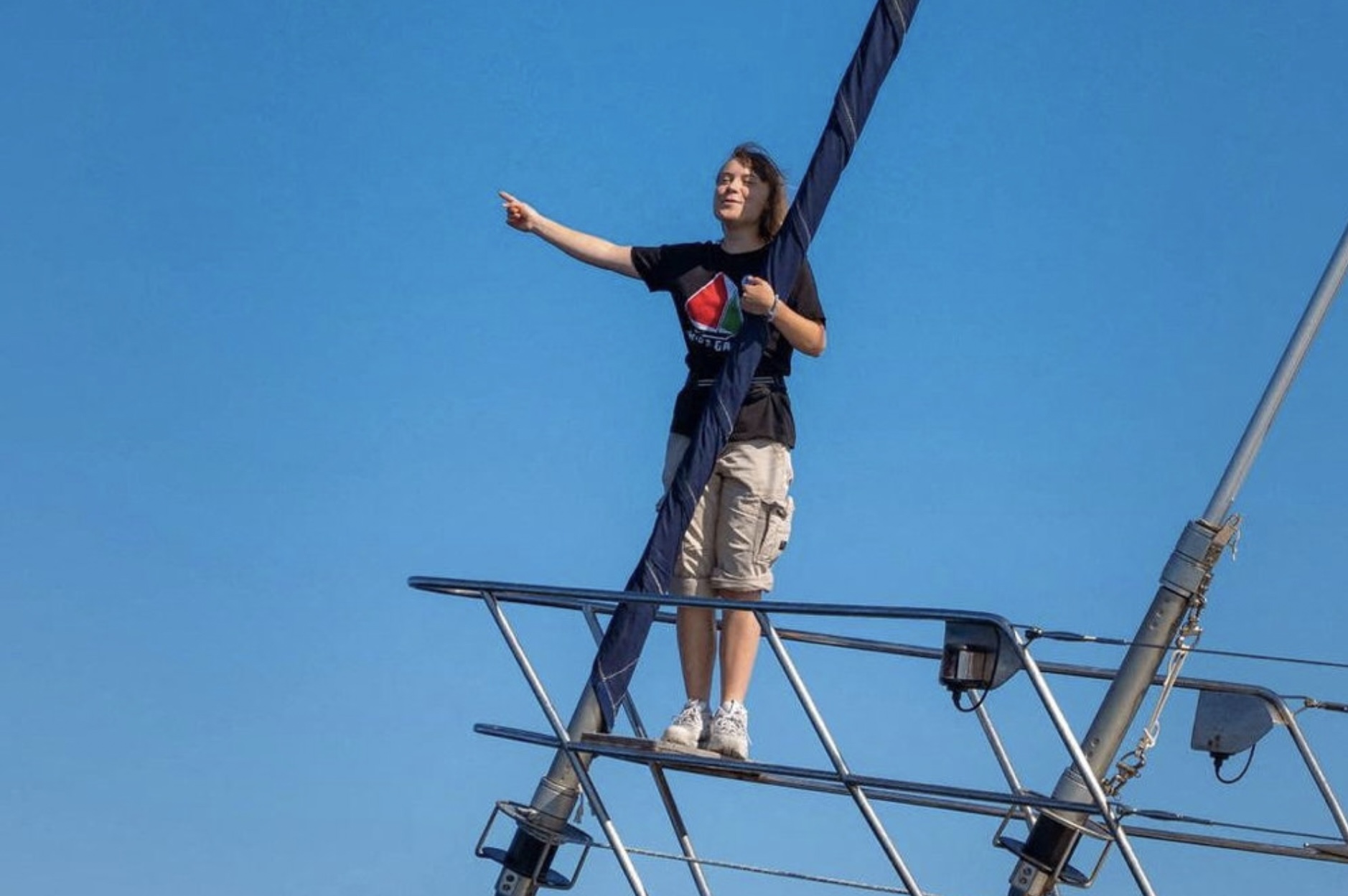Umborð á bátinum, "Madleen", er millum annað svenski veðurlagsaktivisturin Greta Thunberg.
