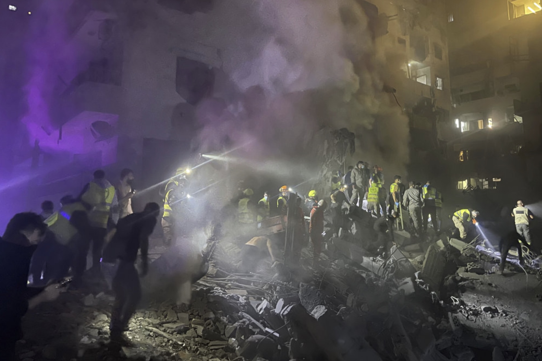 Fimm ísraelskar rakettir raktu ein íbúðarbygning mitt í høvuðsstaðnum í Libanon, Beirut, í gjárkvøldið.