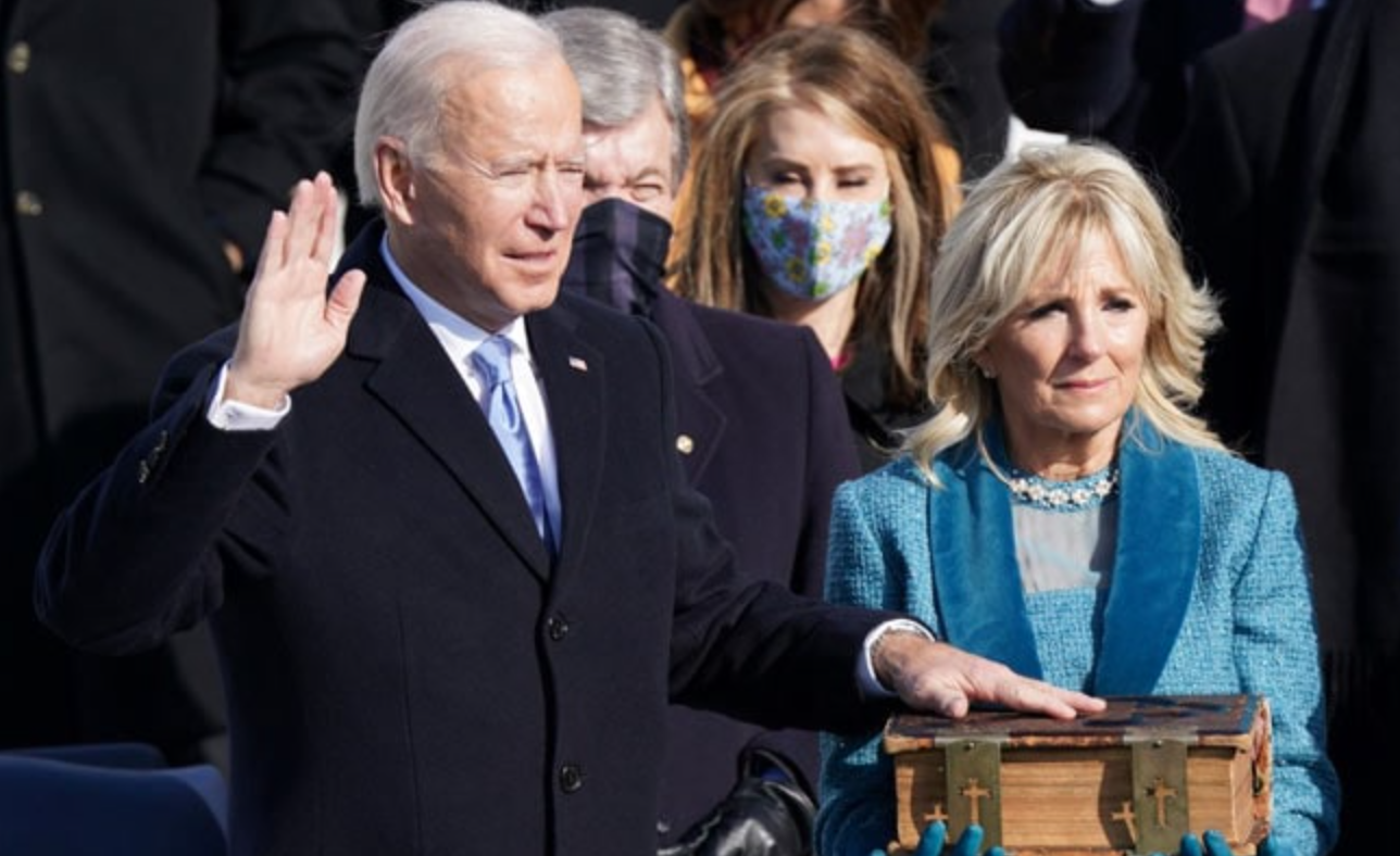 Hetta varð gjørt á hátíðarhaldi í Washington, sum var merkt av koronustøðuni, og av at ófriður herfyri var í Washington. Bert eitt minni tal av innbodnum sluppu at verða við, og í býnum er strangt vaktarhald fyri at forða fyri ófriði.