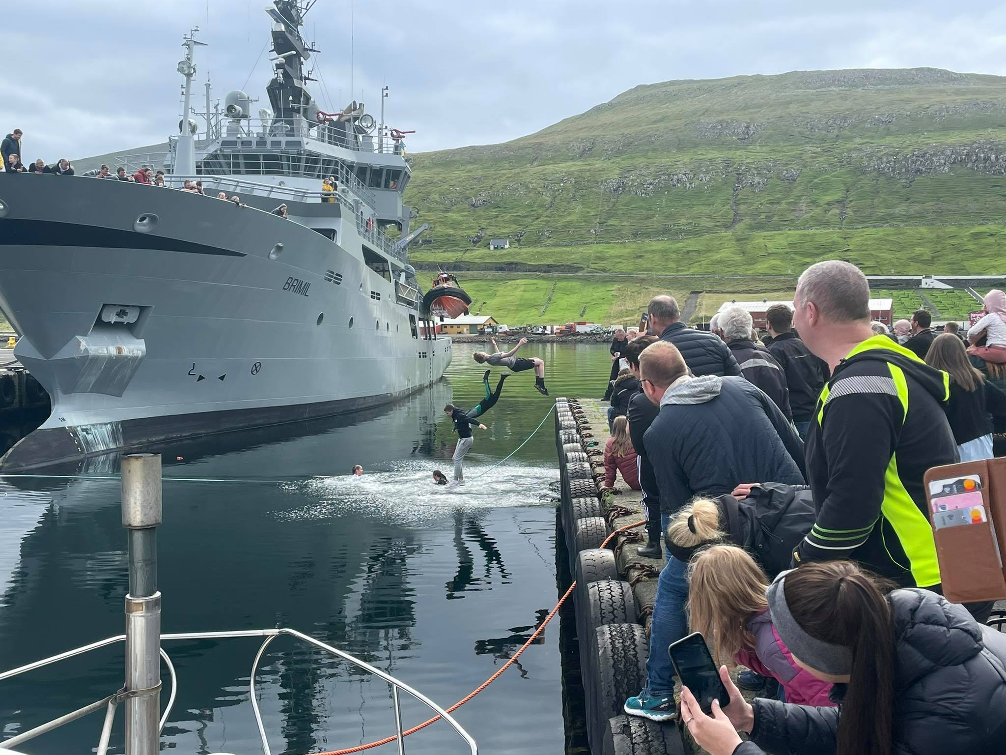 Brimil og træskipini hava havt opið skip, og børnini kundu royna hoppiborg, og í kørum sást ymiskt, ið annars er á havsins dýpi, og klokkan 16 ljóðaði lúðurin á Brimli, og so var stóra vatnkríggið í gongd.