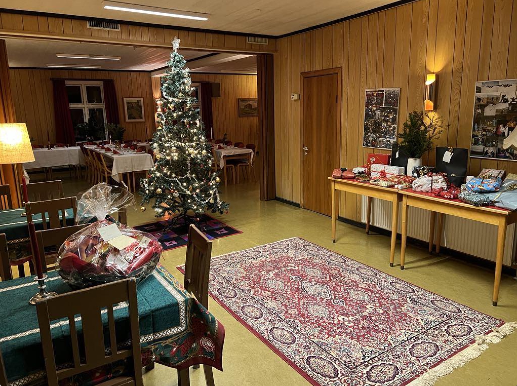 Húsið letur upp klokkan 17.00, og sjálvt jólahaldið byrjar kl. 18.00 við døgurða og hugnaligari samveru, og øll fáa jólapakka.