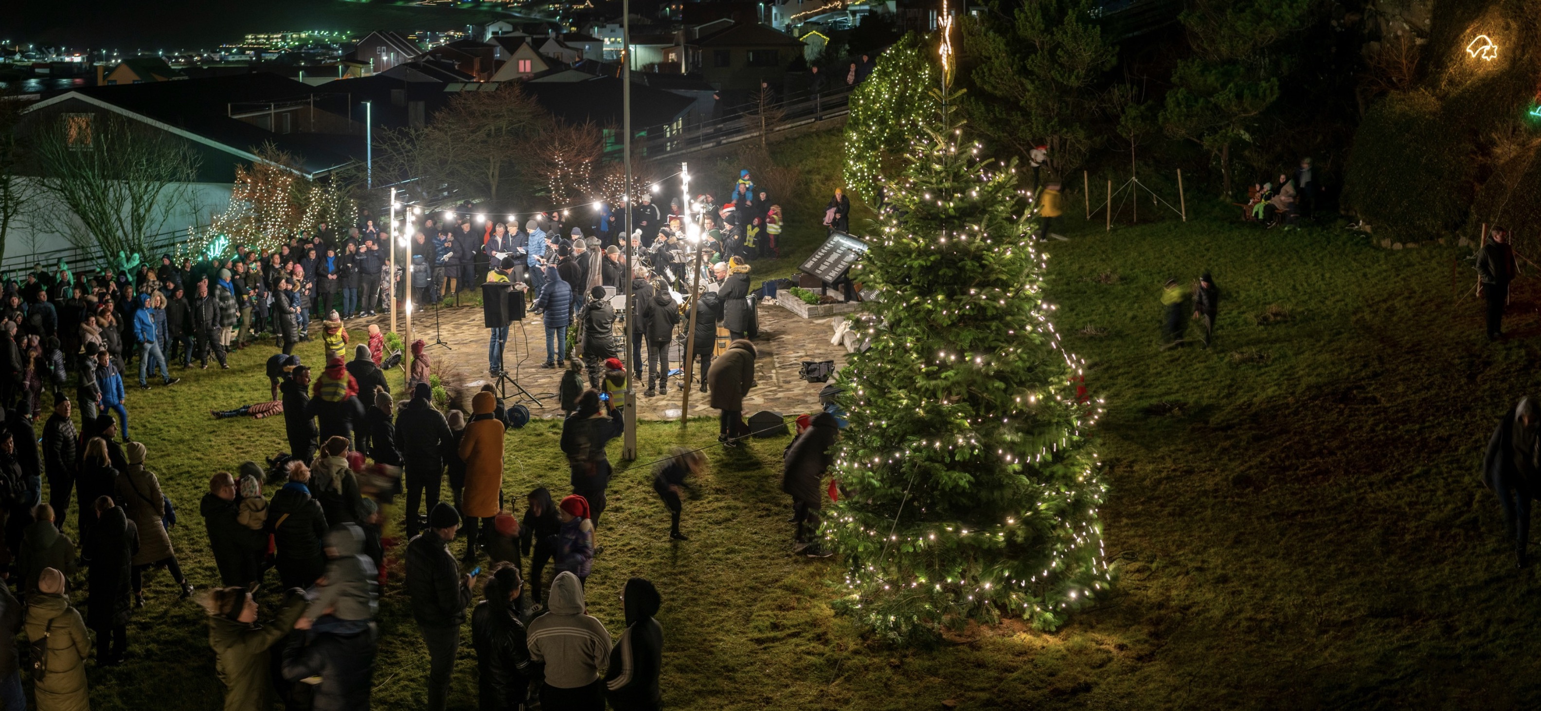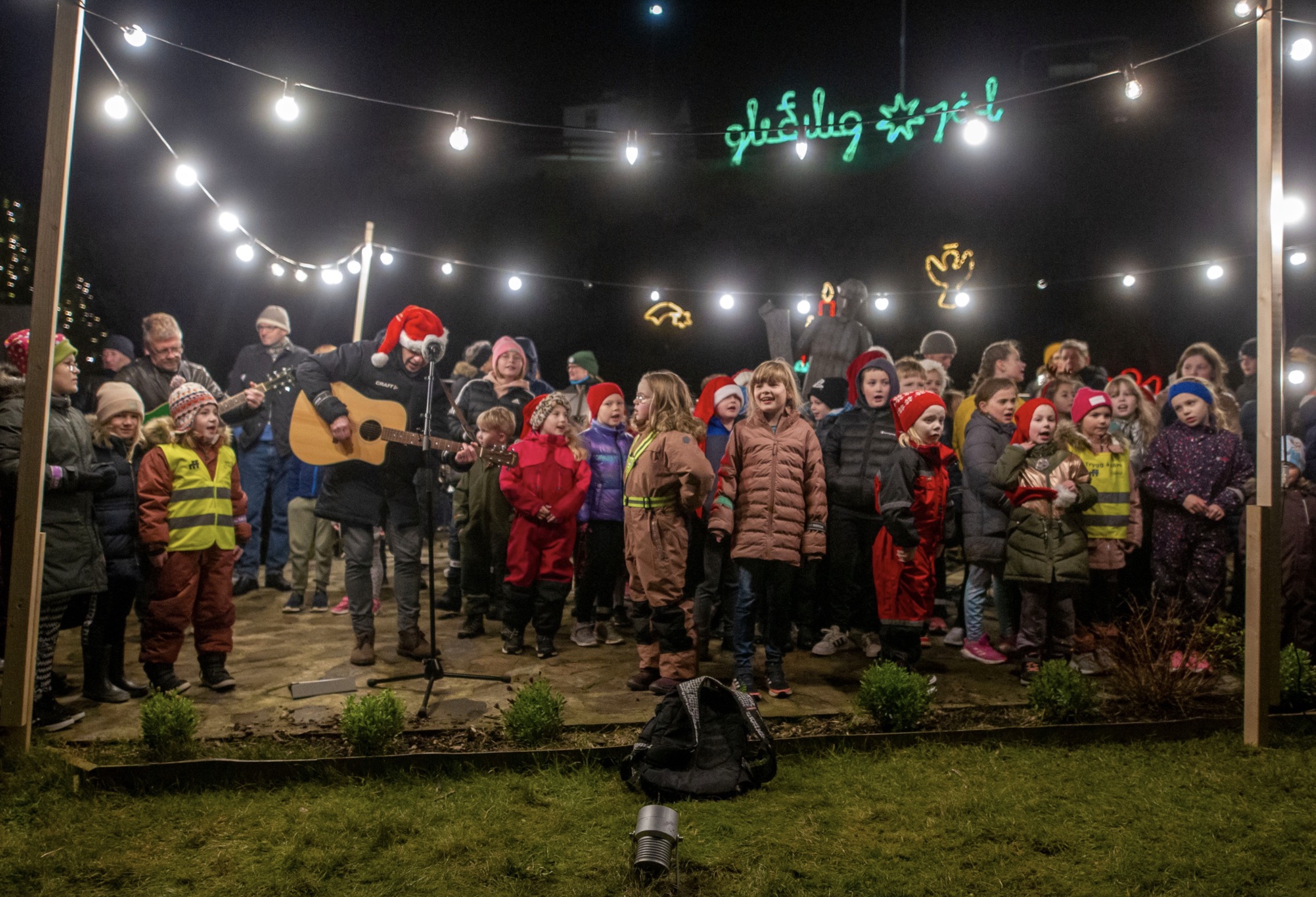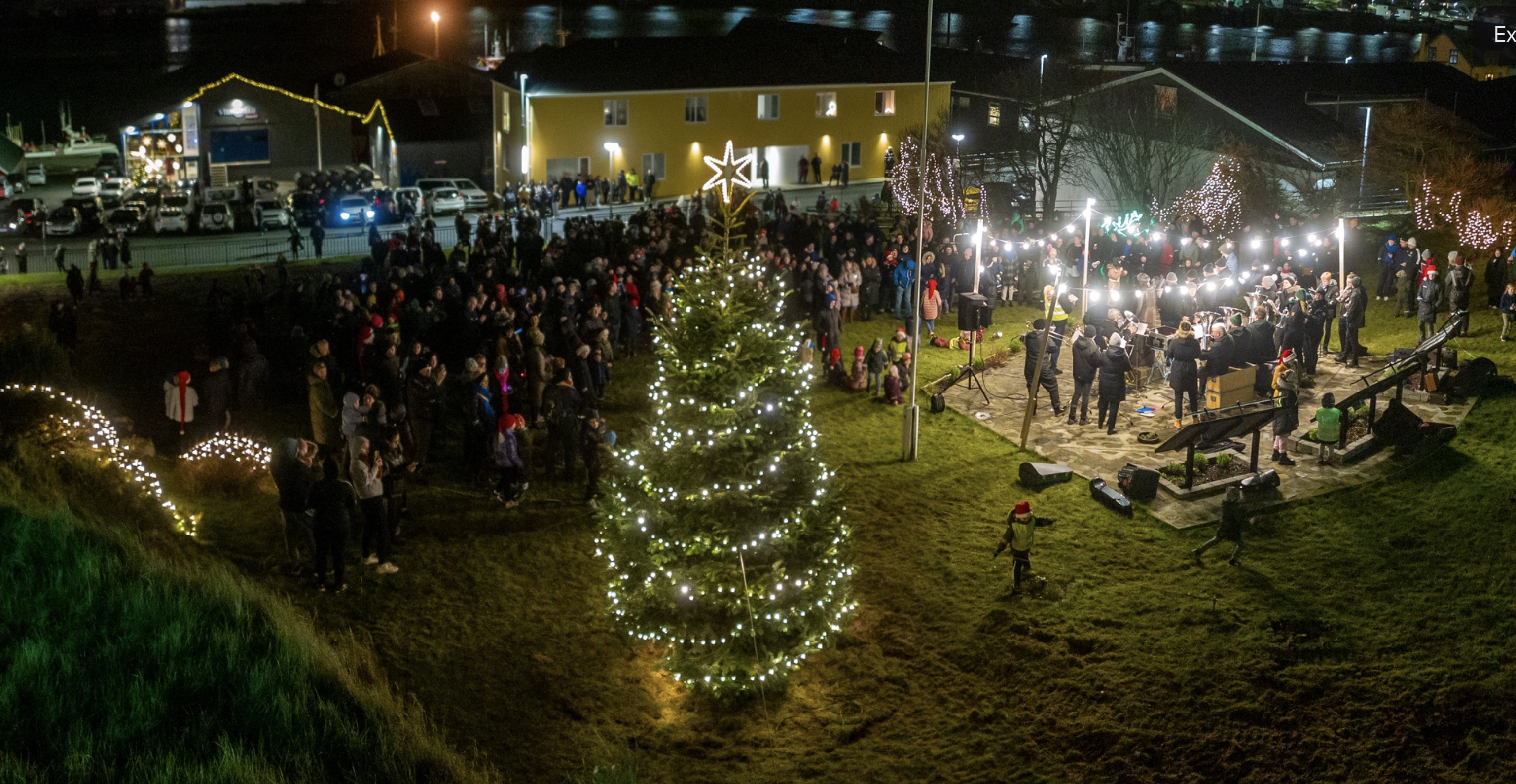 Tá ið jólini eru farin aftur um, verður pyntið tikið niður, og so stendur træið til næsta ár. Tað var heilt fitt á fólki til staðar hetta kvøldið, tá ið træðið varð tendrað. Myndirnar hava vit fingið frá Vágs Kommunu og tær hevur Bjartur Vest tikið.