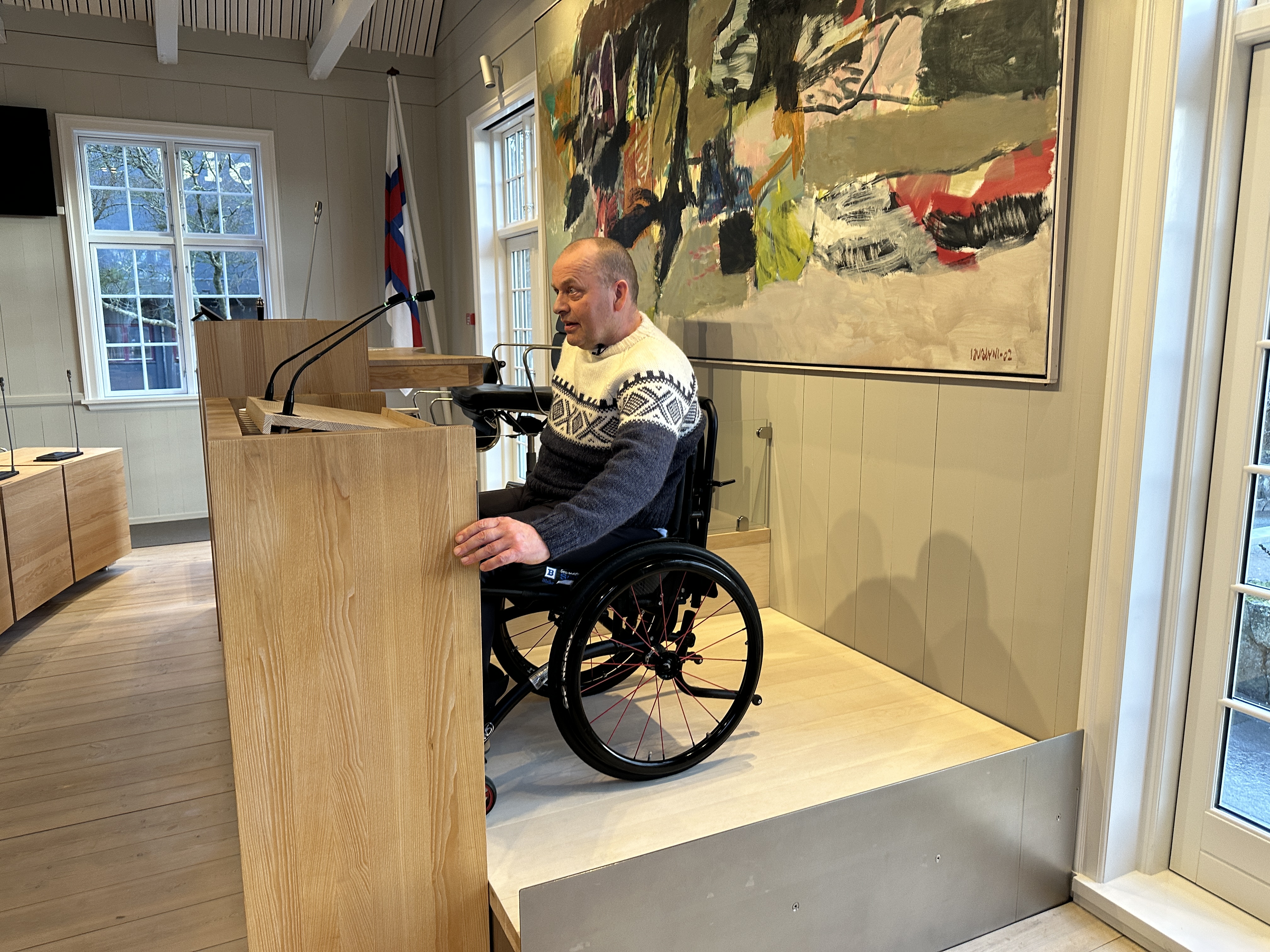 Í fjør var Kaj Leo Holm Johannen burtur frá tingarbeiðinum vegna sjúku. Men hann kom aftur í tingið í januarmánaði, eftir at talarastólurin varð umbygdur soleiðis, at hann – og øll onnur rørslutarnað í koyristóli – sleppa upp á tingsins røðarapall.