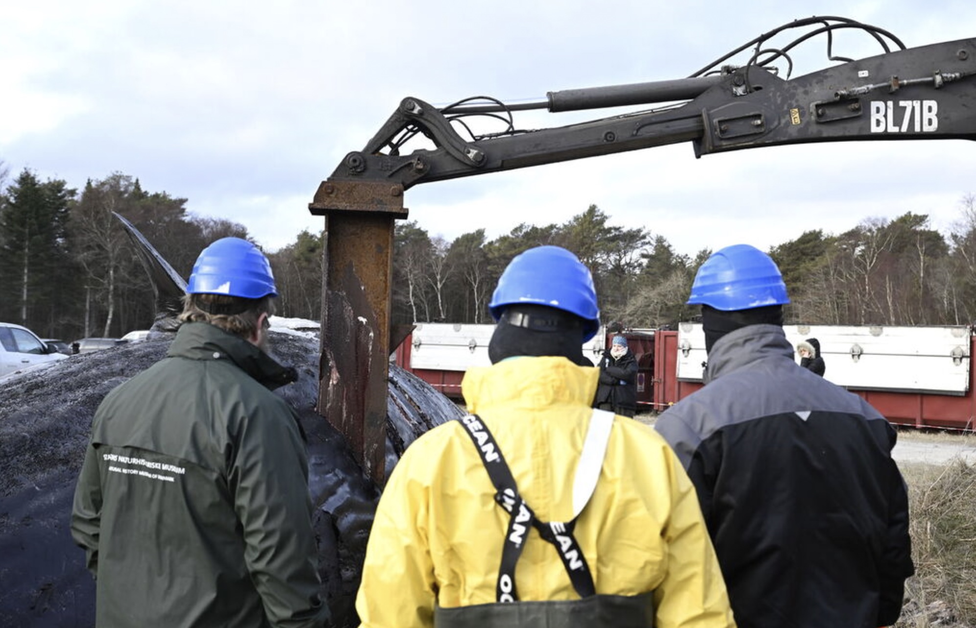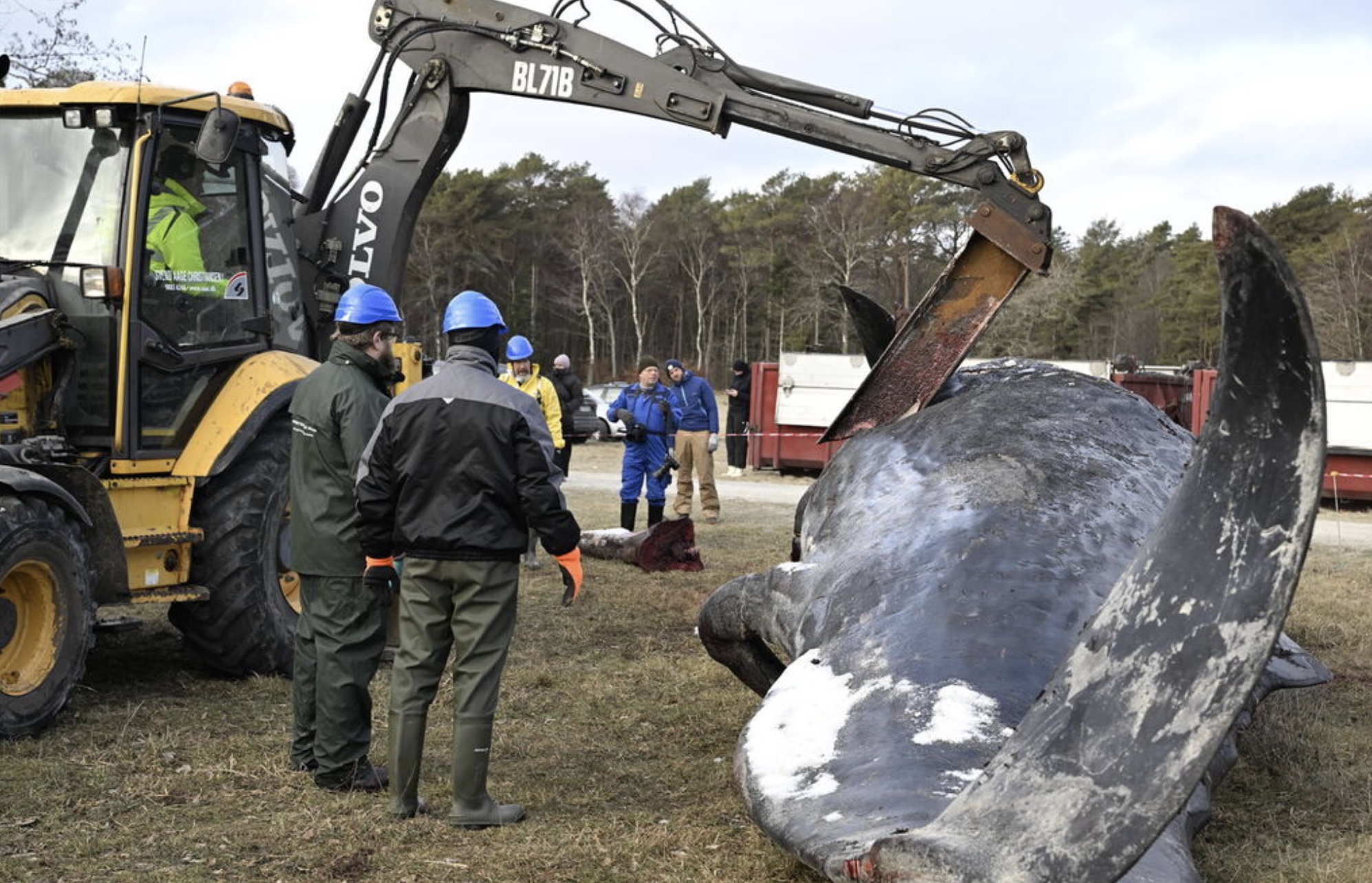 Eftir mátingina møtti líkskoðanartoyminum trupulleikum við at fáa røttu útgerðina á rennigravara til at hjálpa til við at fáa hvalin út.