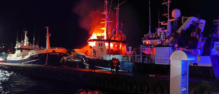 Herfyri kom eldur í trolaran Slættaberg, sum liggur við bryggju í Klaksvík. Skipið er ikki í vinnu, men skal seljast sum gamalt jarn.