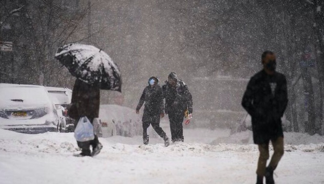 Tað byrjaði at kava í New York City sunnukvøldið, og fleiri staðni liggur kavin meira enn hálvan metur tjúkkur - og fleiri býir eru raktir av kavastormi.