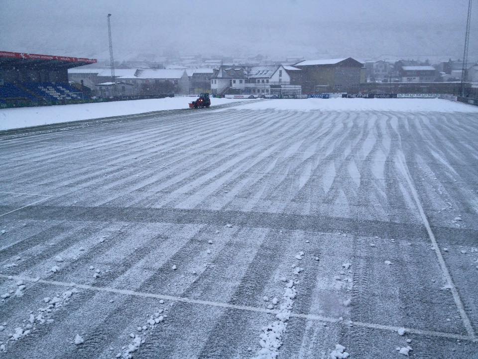 Tað hevur kavað síðani heilt tíðliga í morgun, og tað er fitt av kava niðurkomin í Klaksvík, har fótbóltsvøllurin væl og virðiliga var kavaklæddur, tá ið teir um níggju tíðina fóru at rudda.