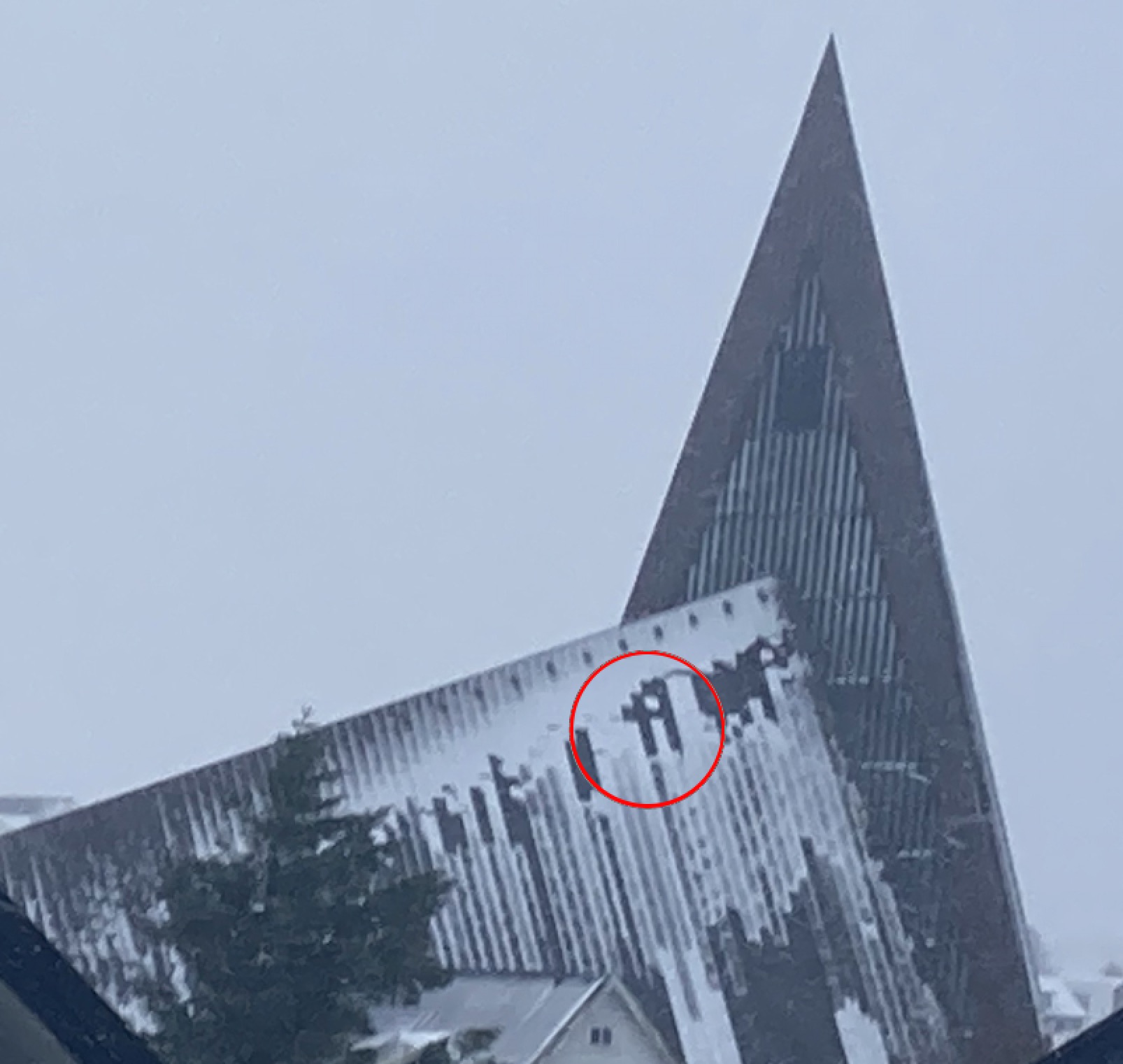 Sum myndin vísir, so hevur kavin skapt ein kross á kirkjutakinum, og tað hevur valla verið heilt av tilvild.