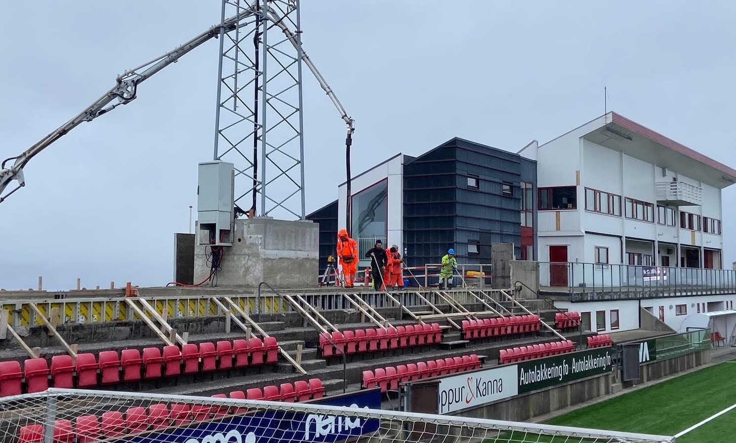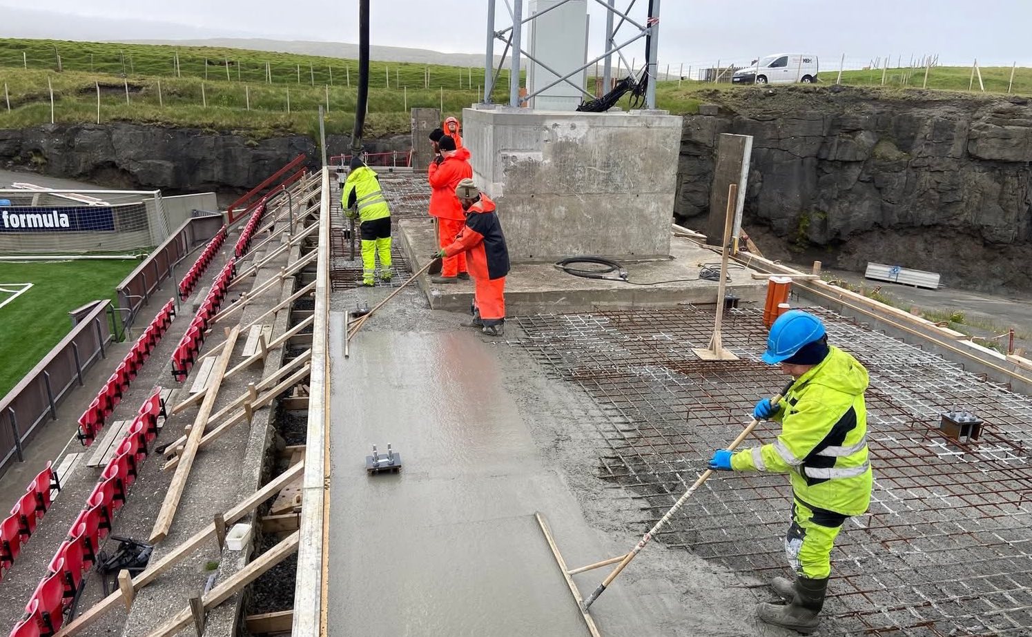 Samstundis, sum nýtt graslíki er lagt á, hava fólk hjá byggifyritøkuni KBH gjørt fyrireikingar til stoyping av fundamentum til nýggju skýlini.