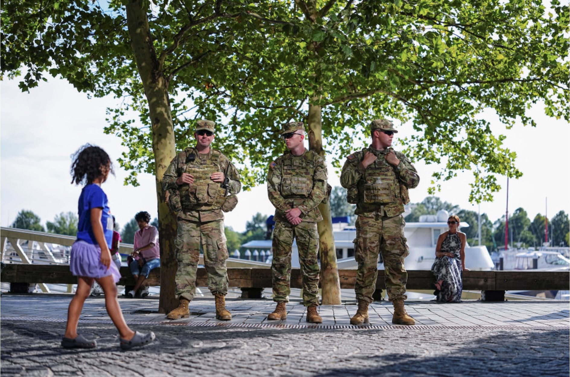 Fyrr í august sendi Trump 800 hermenn frá tjóðarhirðini í amerikanska samveldishøvuðsstaðin, Washington D.C.