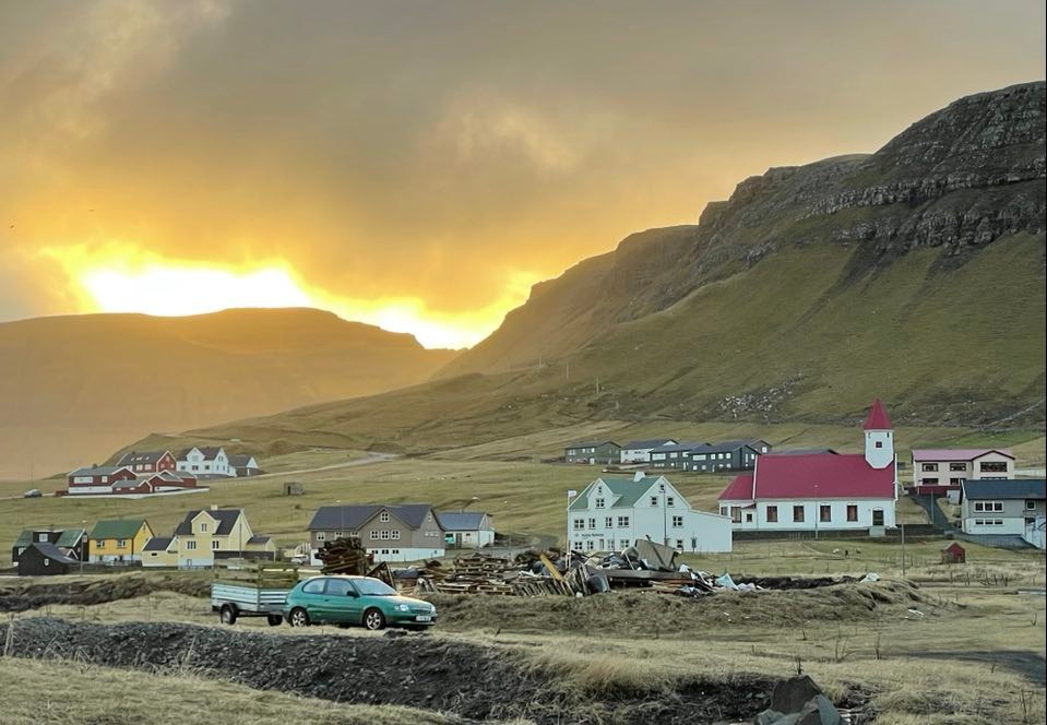 Myndin niðanfyri er tikin í Hvalba í morgun, og tað sæst, at eisini har gera tey klárt til stórt nýggjársbál.