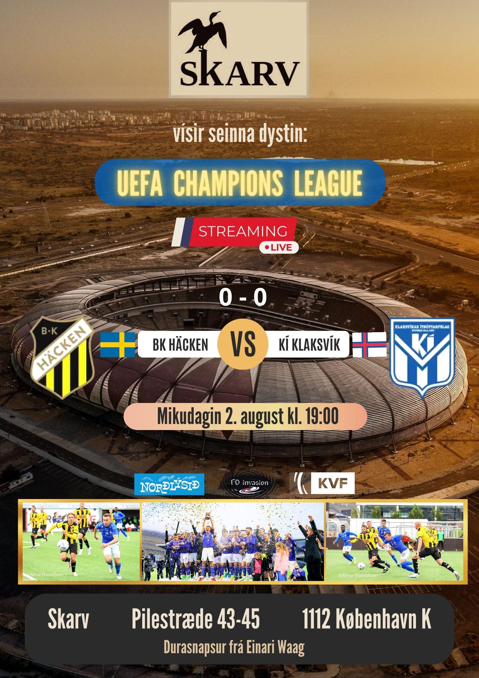 Beinleiðis úr Gøteborg verður annað umfar av UEFA Champions League dystinum leiktur í Gøteborg millum svensku meistararnar BK HÄcken og føroyameistararnar úr KÍ.