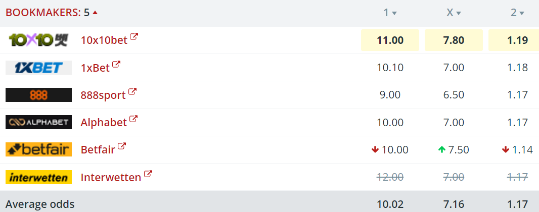 Fimm altjóða veddingarfyritøkur, ið lata odds upp á dystin hava KÍ sum ein greiðan favoritt.