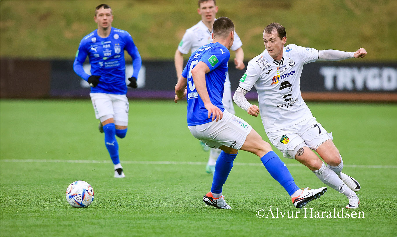 Páll A. Klettskarð er ovast á máltindinum. Í dag hevði hann fýra heilt stórar møguleikar. Í fyrra hálvleiki varð hann kolldømdur fyri rangstøðu, tá ið hann eftir fríspark frá Árna Frederiksberg setti bóltin í málið, og so setti hann eftir innlegg úr høgru og við nærra stólpa bóltin dygst skeivu megin stólpan.