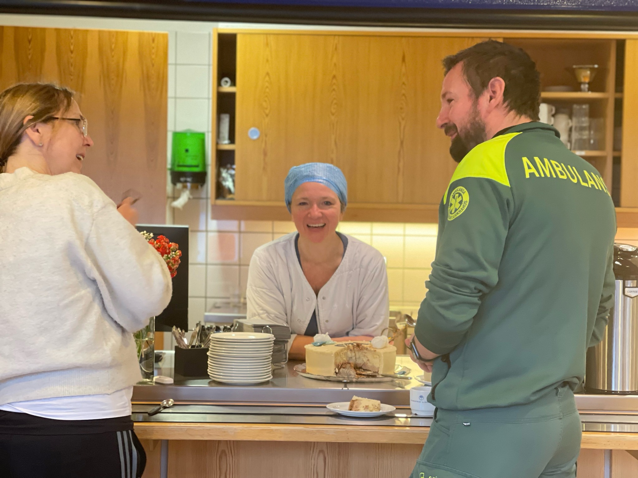 – Vit hava havt vitjan av hornorkestrinum, sum spældi nøkur løg, tá fólk komu til arbeiðis í morgun, ordiligur hátíðardámur. Starvsfólk ynsktu hvørjum øðrum tillukku og vit hava fløgg og blómur á borðinum, so hugnaligur stemningur. Køkurin gjørdi ein deiligan døgurða og fólk góvu sær tíð at njóta máltíð og samveru. Eisini hava vit havt flottar lagkøkur, so starvsfólk kundu fáa ein søtan bita seinnapartin. Sami rættur var á matarlepanum til sjúklingar og tey hava eisini fingið lagkøku seinnapartin.