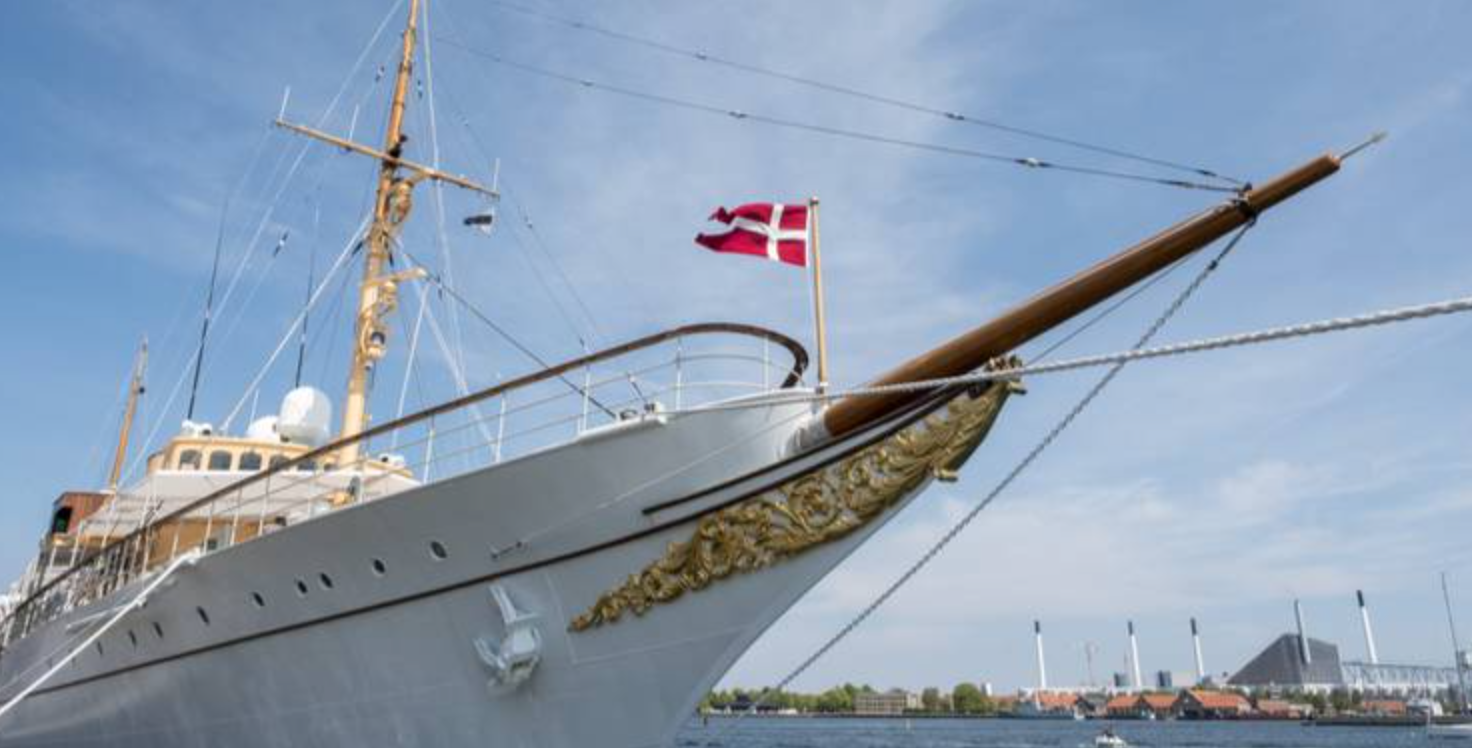 Kongaskipið Dannebrog liggur framvegis við maskinskaða í Frederikshavn í Danmark.