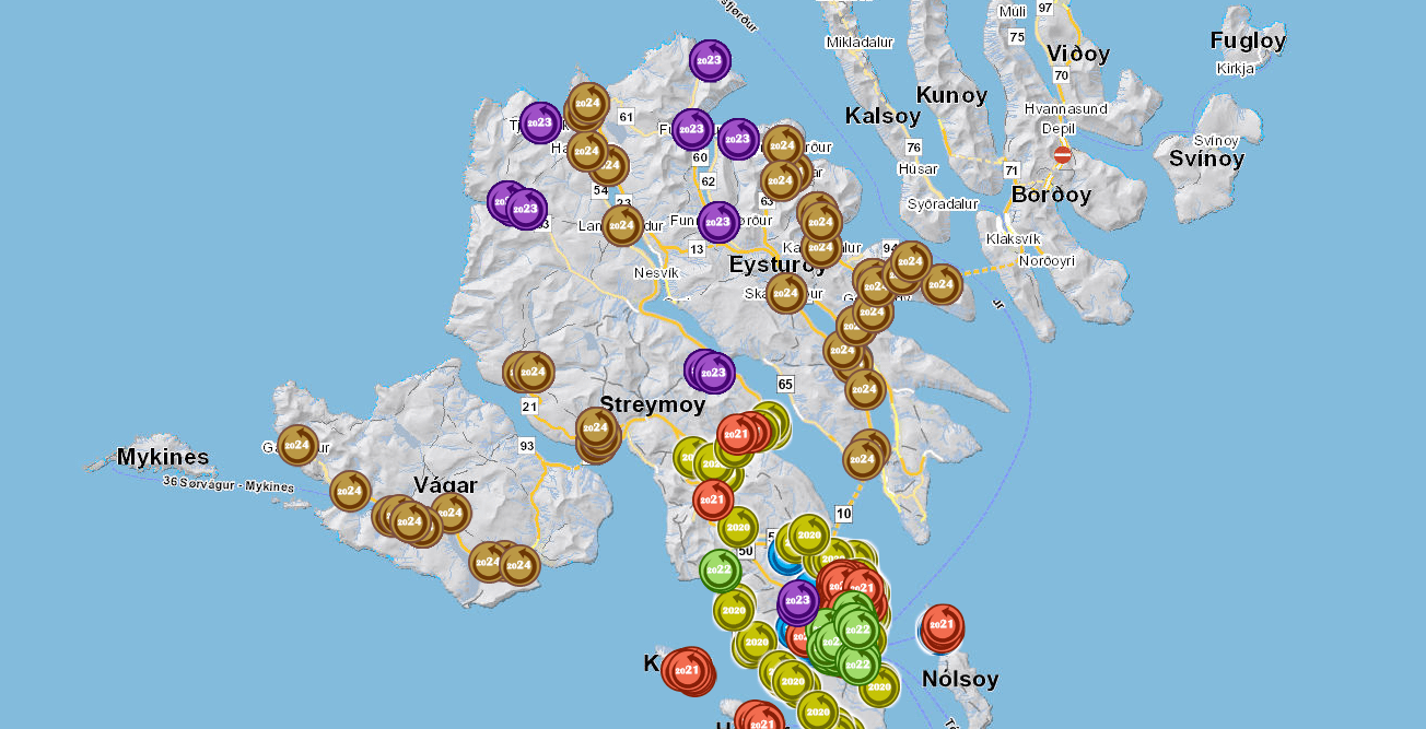 Umhvørvisstovan boðar frá, at í løtuni eru myndir úr Eysturoy, Streymoy og Vágum, men altsamt fleiri støð leggjast aftrat.