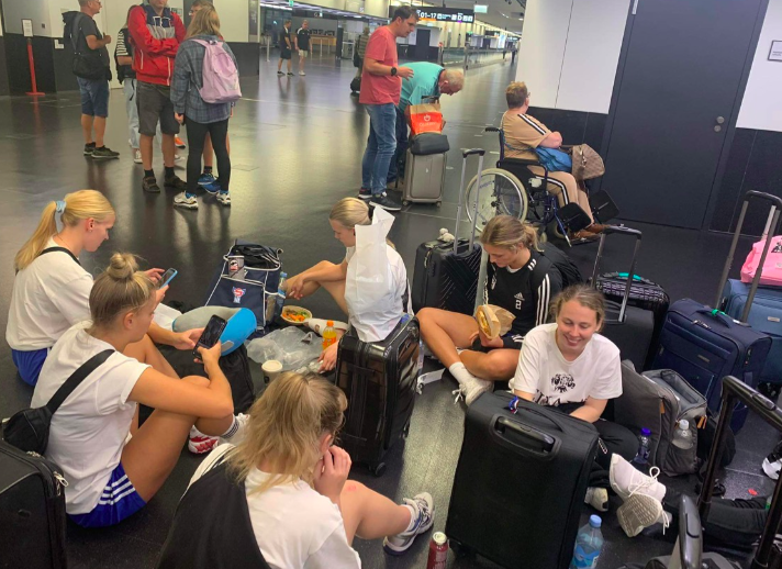 Kvinnurnar hjá KÍ er komnar vegin fram til Kýpros, har liðið skal spæla tríggjar dystir í Champions League. Í gjár kom ferðalagið vegin fram.