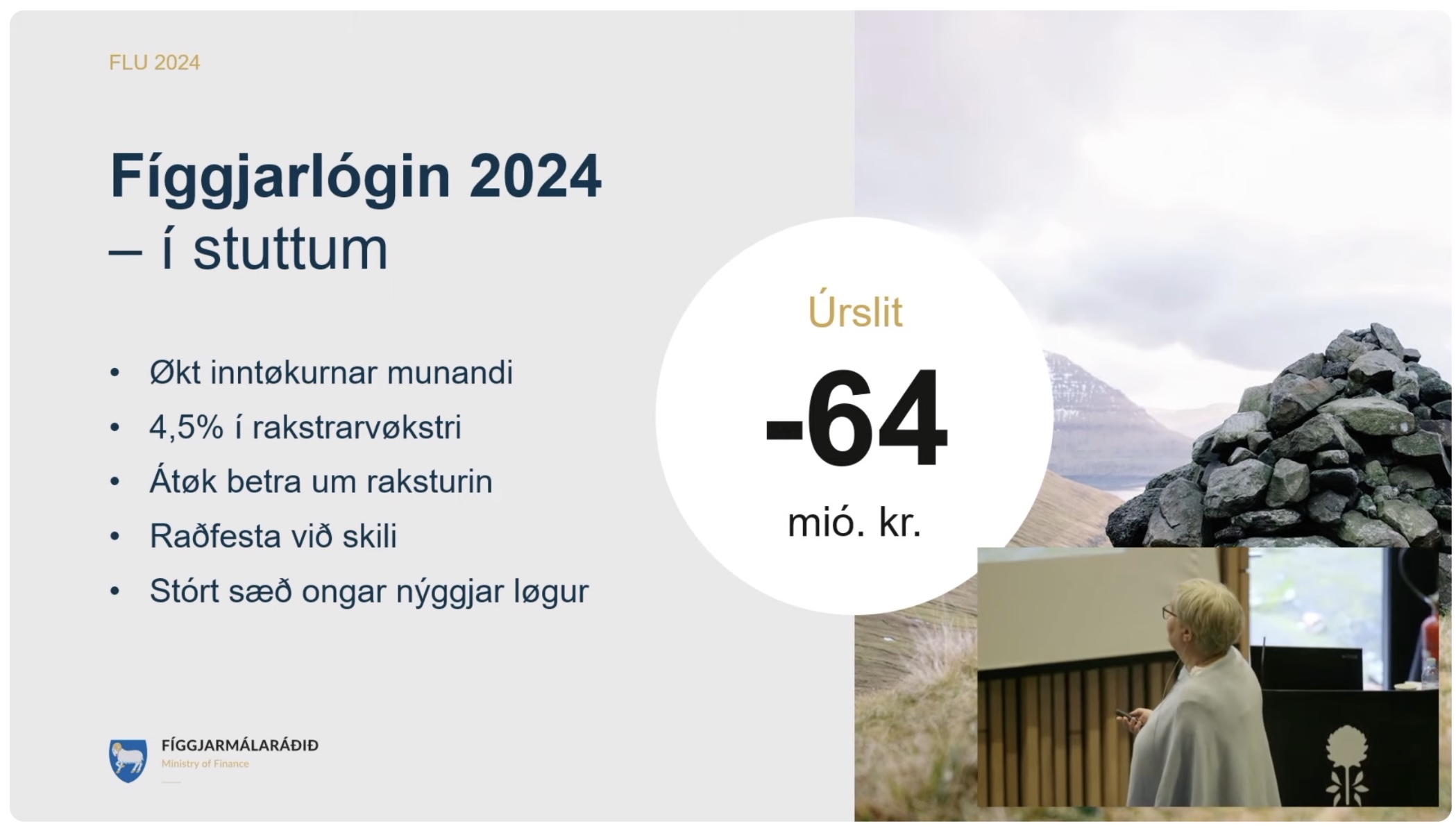 Ruth Vang leggur í løtuni fram Løgtingsfíggjarlógina fyri 2024