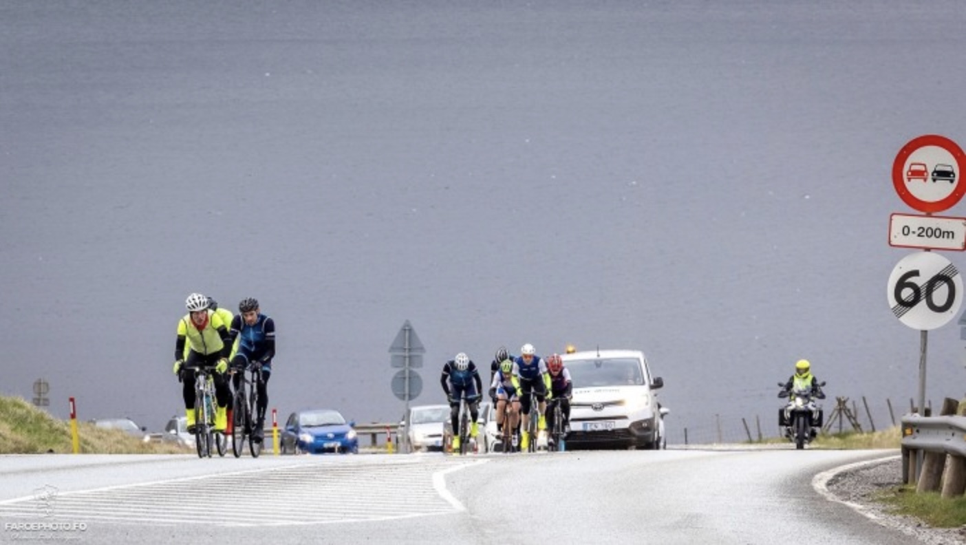 Jákup Petur og Hilmar koyrdu undan Gunnari í brekkuni niðan móti Miðlon og Posta.