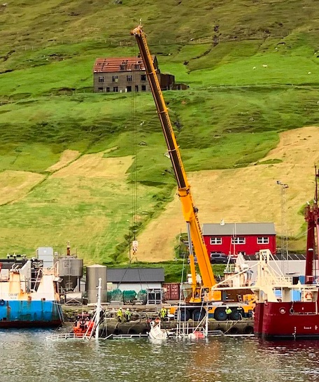 Ein stórur krani hevur verið brúktur í arbeiðnum.